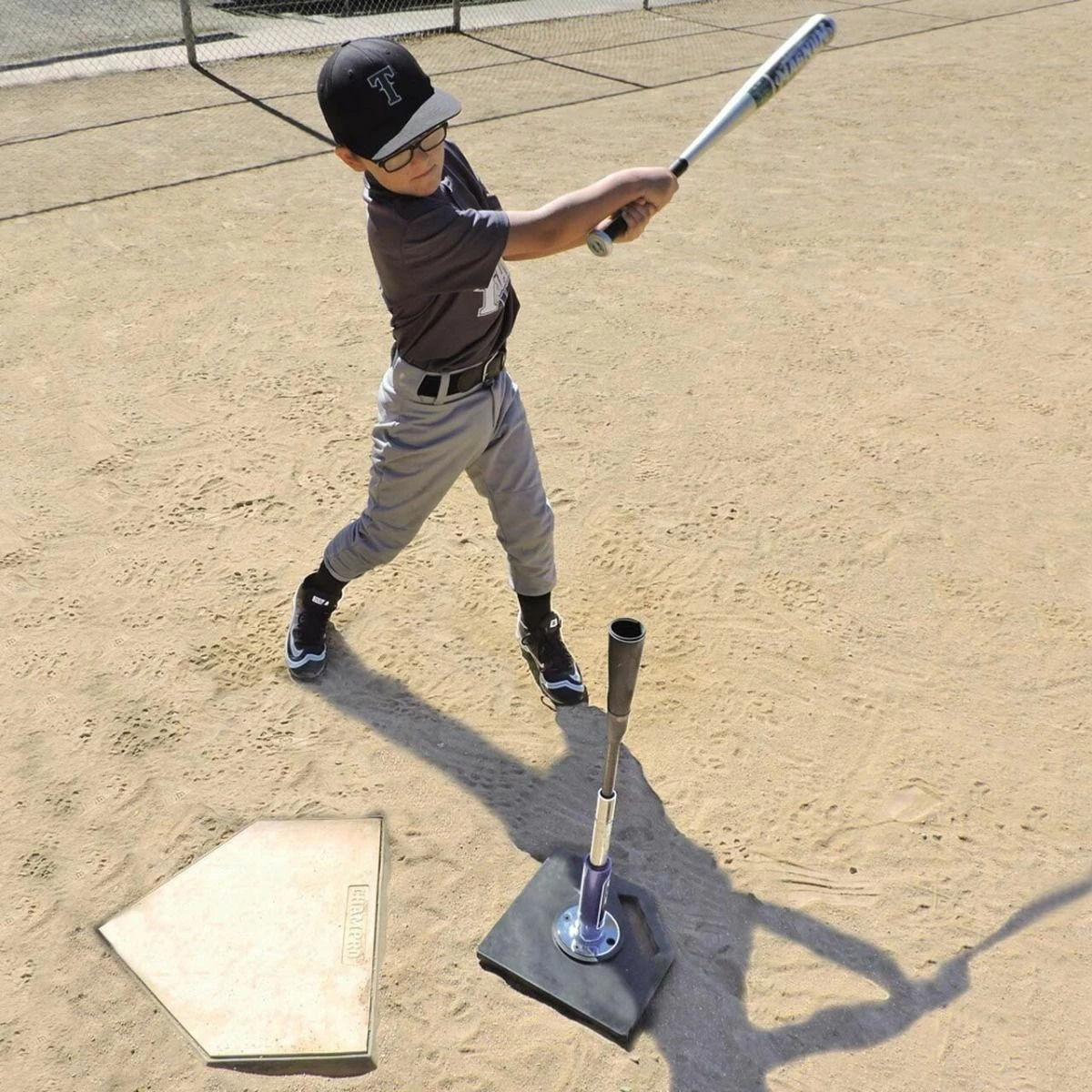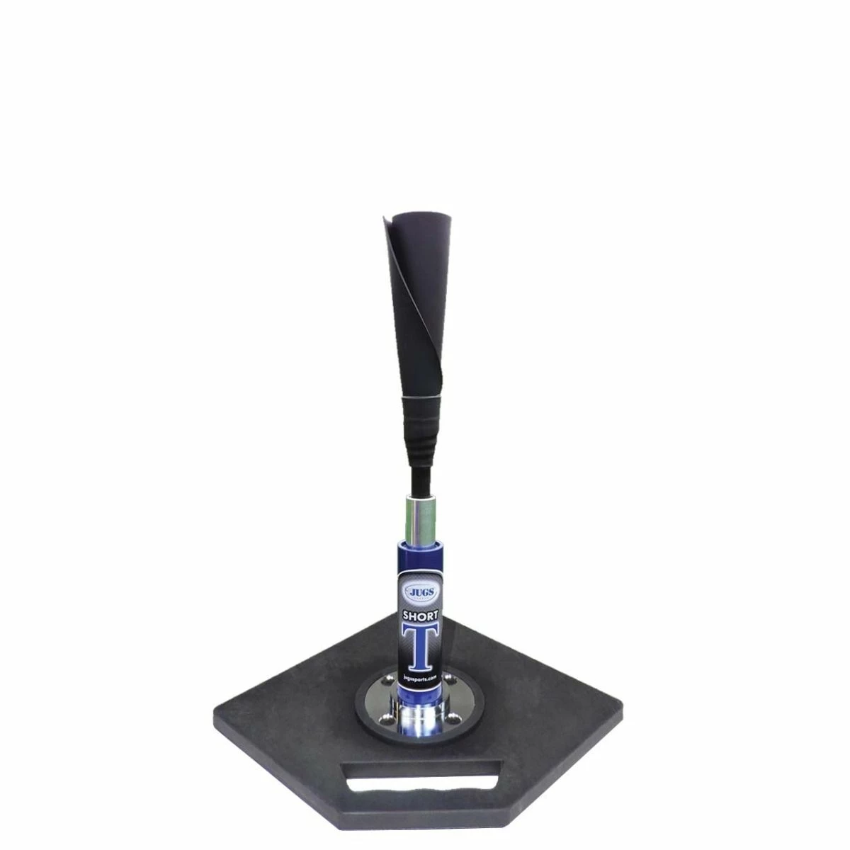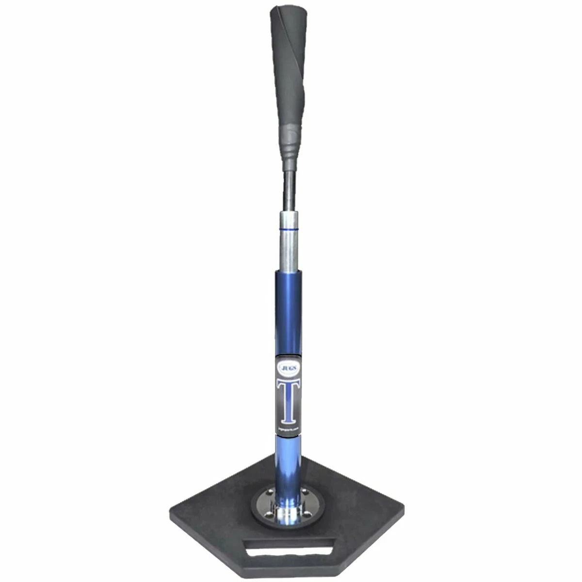The Jugs combo T batting tee package features 2 interchangeable batting tee stems and 1 base that lets players work at every level of the strike zone. The short tee stem is adjustable from 16โ to 23โ and the larger tee stem is adjustable from 24โ to 46โ.ย The steel base is covered in round rubber edges that wonโt scratch or scuff your gym floor and features a grip-n-go handle for easy transport. The always-feel-the-ball flexible top on both stems allow hitters to feel the ball on contact rather than the tee. The patented internal interlocking bolt design prevents slippage of the upper tee stem making the Jugs combo T a high-quality solution for hitting drills at any skill level.