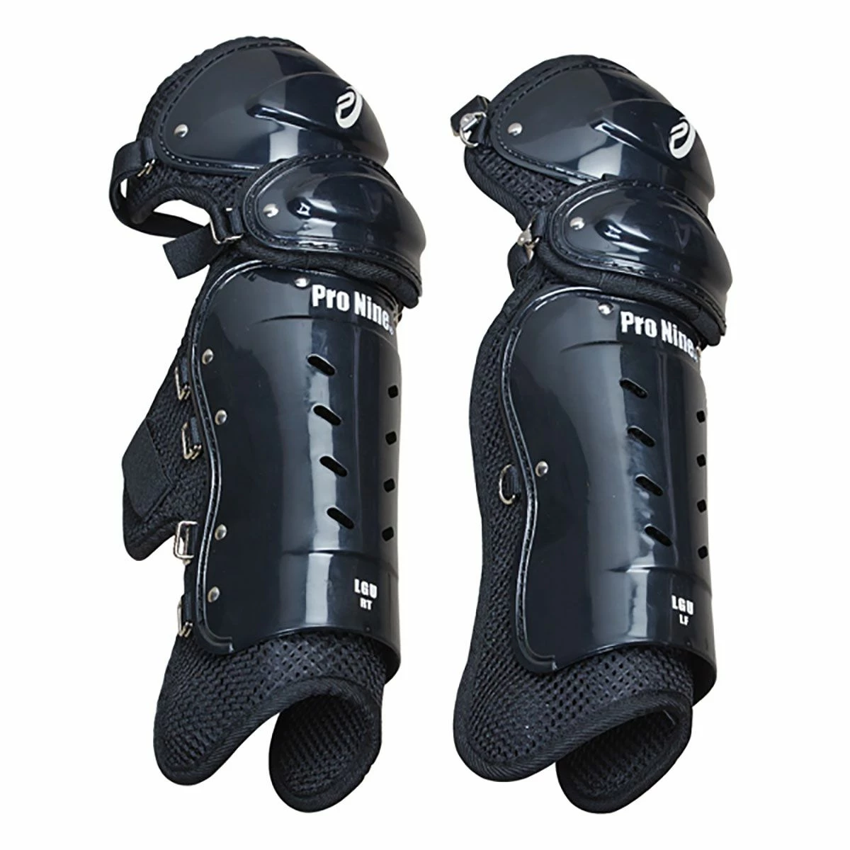 The adjustable umpire leg guards from Pro Nine are a comfortable option designed for either men or women. These leg guards feature wrap around webbed and ventilated mesh padding, an ABS plastic shin plate, and embedded plastic ankle guards for ultimate protection behind the plate. The 15 – 17 inch adjustable size fits under most makes of umpire pants. Feel cool and fresh with the removable and washable cool max shin liner and knee pads that dry quickly for the next game. The floating middle knee cap allows for unbelievable flex to ensure you’re able to move freely in between plays.