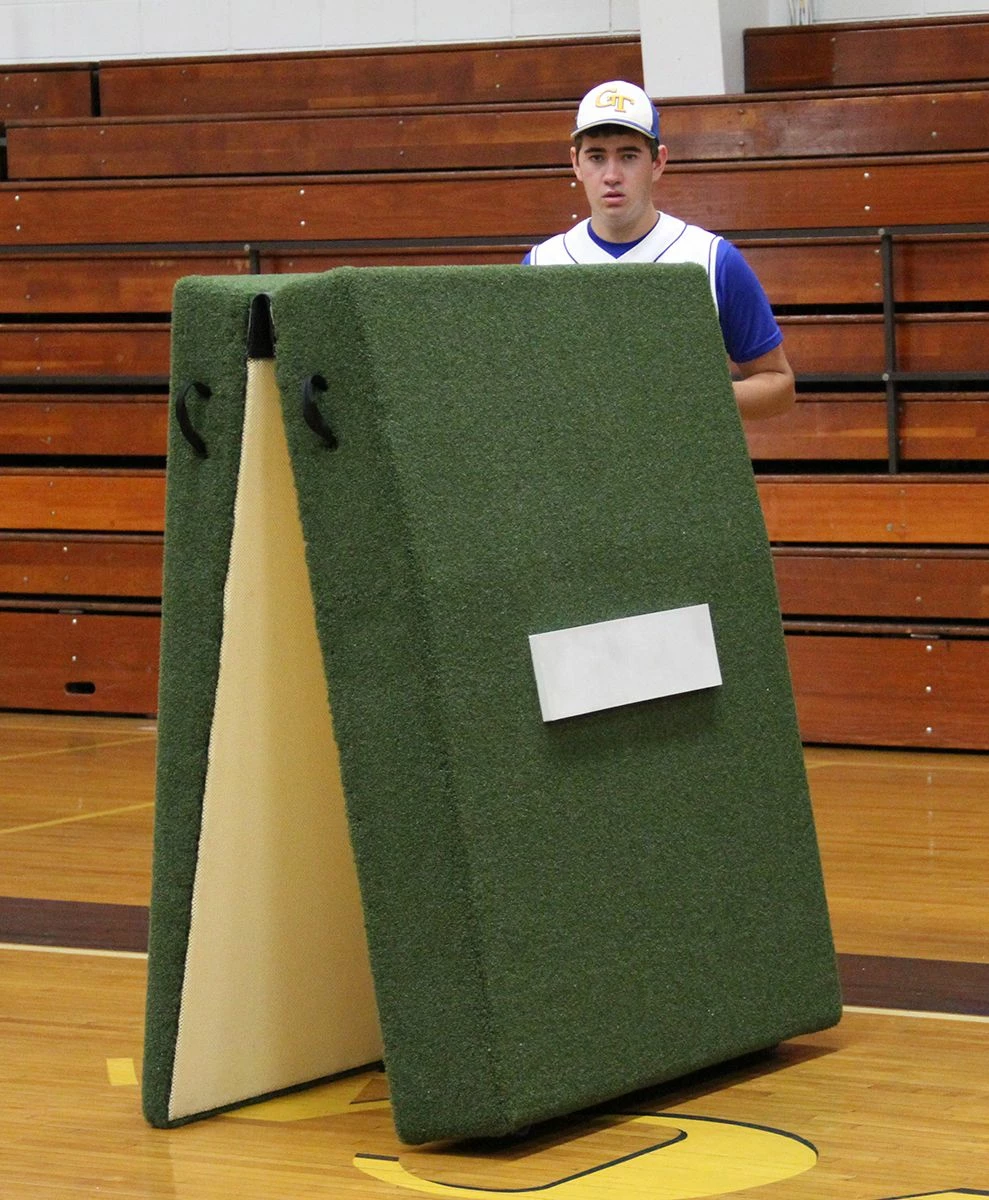 The Proper Pitch Fold’n Roll mound is the perfect mound to learn proper body mechanics on a regulation slope. The lightweight, 175 lbs design makes transport easy and it can fold up and roll away in a matter of seconds. The mound is weather resistant enough to stand-up to indoor or outdoor use. The non-slip, non-marking back will protect your gym floor from any damage. The mound is made with spike-proof 44 oz sq. yard artificial turf and has a regulation replaceable pitching rubber.