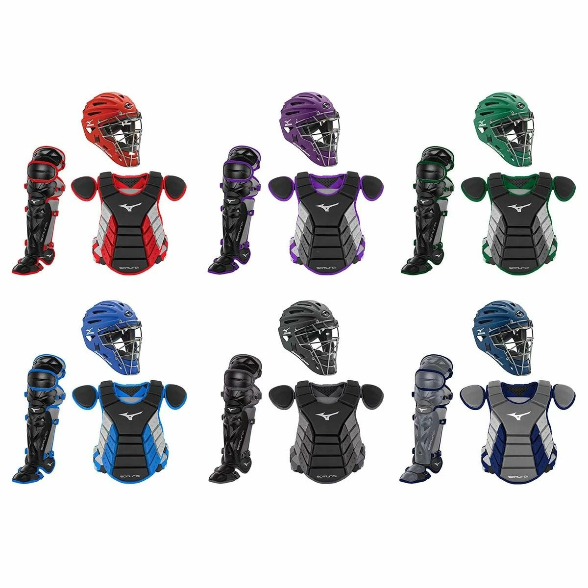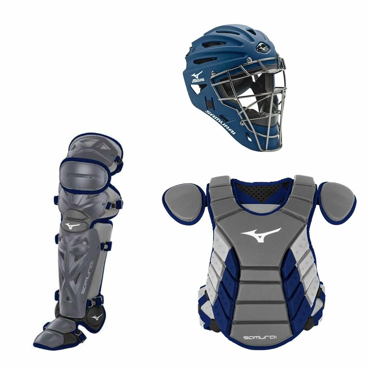 The Mizuno Samurai catcher’s box set includes the equipment you need to stay protected behind the plate. The kit includes the exceptional Samurai gear series including a helmet, chest protector, and shin guards. The Samurai catcher’s helmet G4 features durable, lightweight construction. The ventilation system allows for breathability and air circulation that will help keep the catcher cool all game long. The frame is constructed of strong steel medal and provides maximum protection. For ultimate comfort, the breathable 3 layer EVA foam padding and adjustable jaw pad will give you a customized-feel that’ll allow you to be distraction-free. The Samurai chest protector is built with high-quality materials that meet a catcher’s demands. It’s made with low rebound foam that is designed with a grippy surface specifically to knock down those pitches in the dirt to keep them in front of you. This NOCSAE certified chest protector has an air mesh back to keep you cool, and a dual adjustment system giving you a personal feel and comfortable fit. To keep your legs protected, this set includes the Samurai shin guards. With Mizuno’s K-Pad innovation, you’ll have unmatched comfort and knee protection all 9 innings as they have a triple-knee cap allowing for increased mobility and flexibility. These leg guards have stainless metal buckles and durable construction along with a super lightweight-feel allowing for maximum performance. The DryLite lining will help wick moisture to help keep you dry when the game gets hot. This is an excellent set that is available in sizes for players of all ages and will have you game-ready.