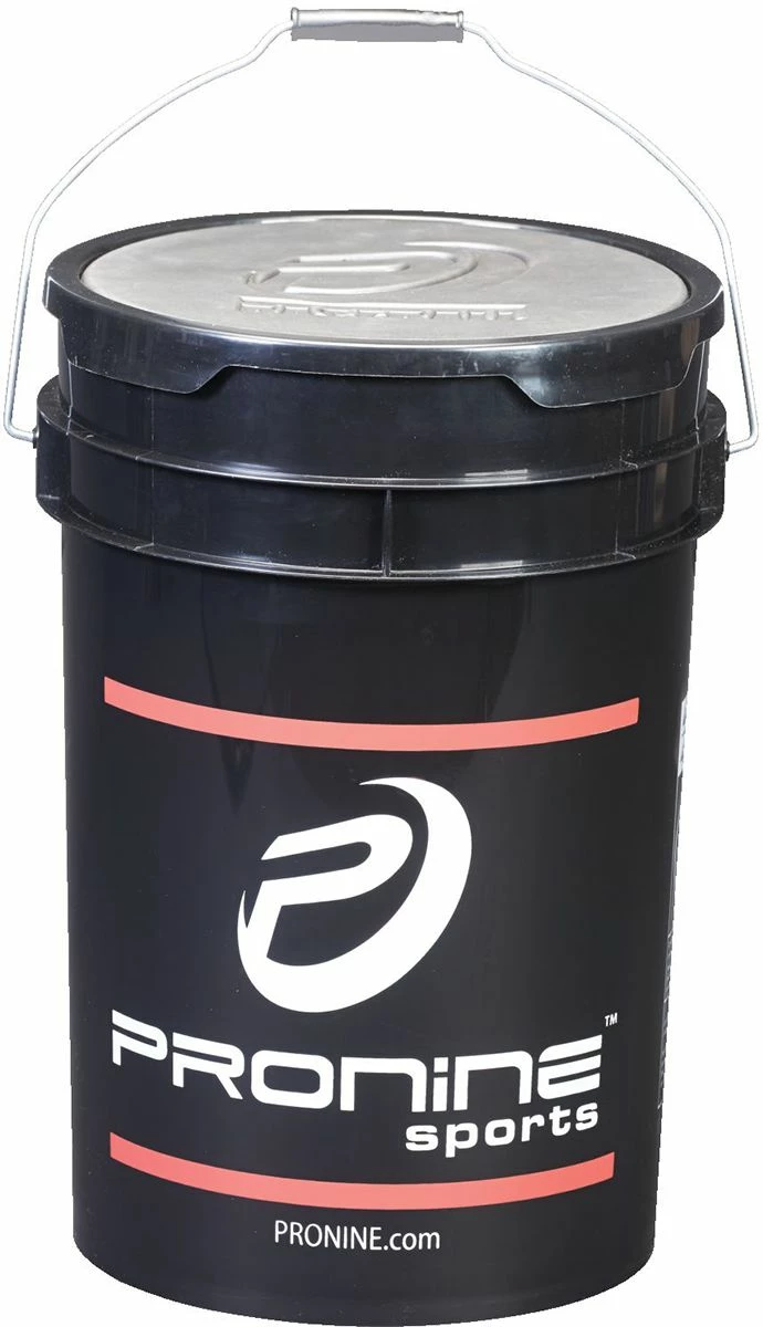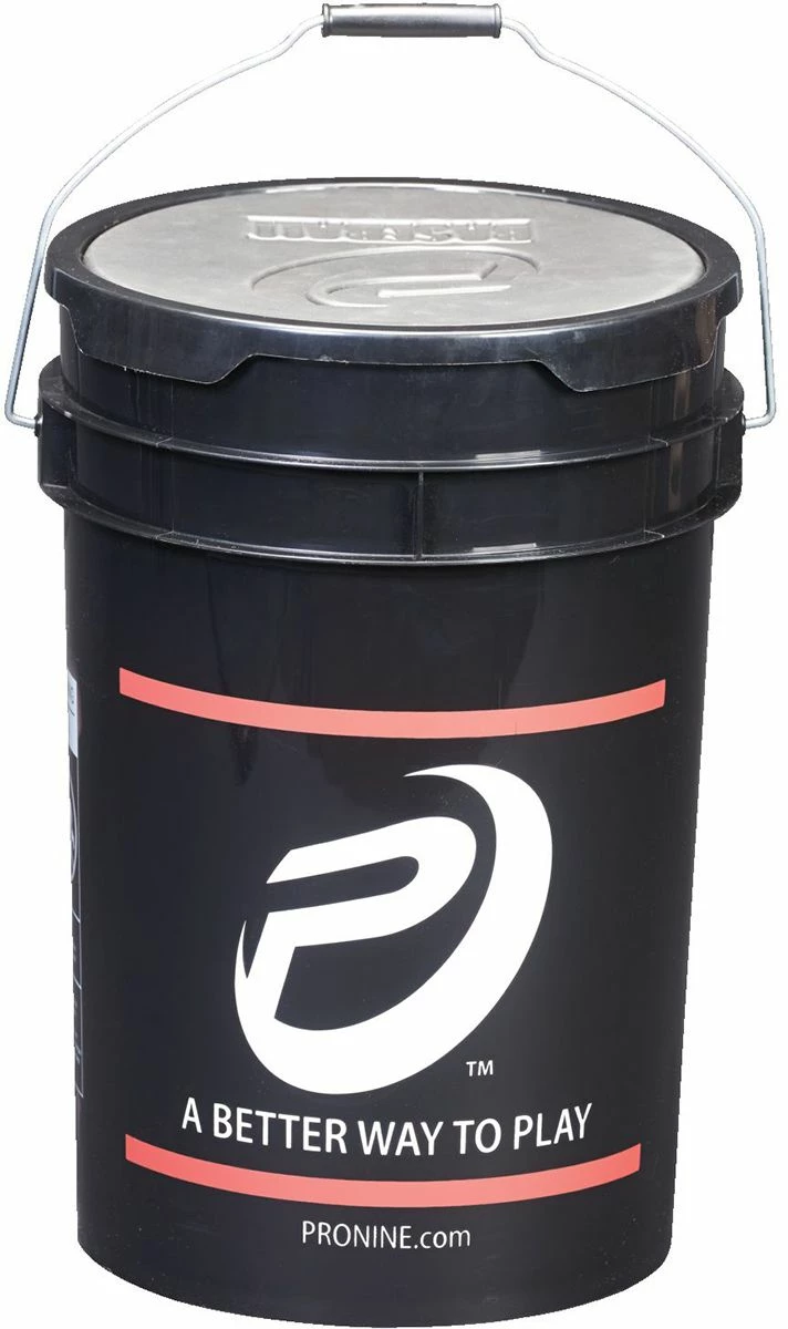 Pro Nine displays their attractive new logo on this 6 gallon, 18″ tall bucket. This bucket not only holds 5 dozen baseballs but also has a padded seat for convenience. The easy-carry handle and tight seal lid make this bucket versatile and easy to use.