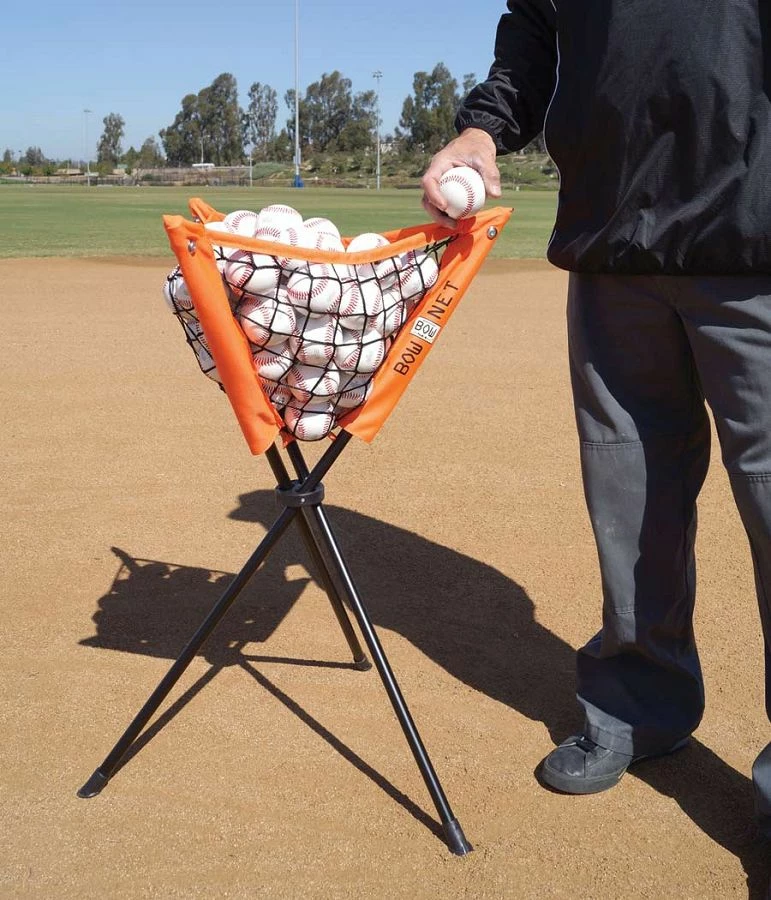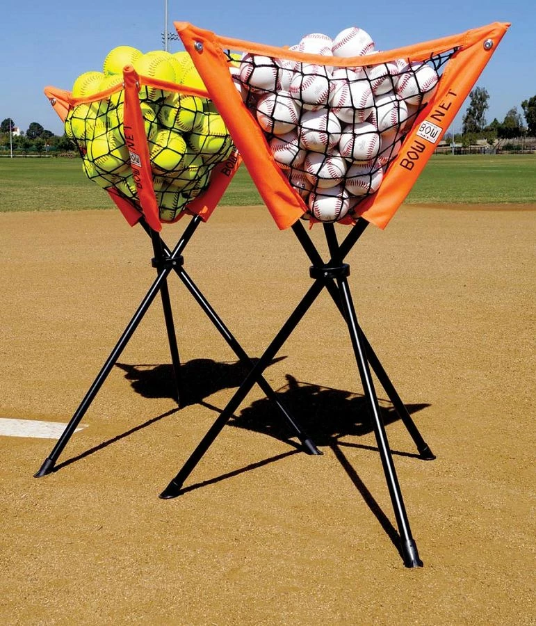 No more bending over into the bucket! Β The BOWNET ball caddy keeps the balls at a convenient height for batting practice or other drills. Β The caddy is collapsible and highly portable at a weight of 3lbs. It sets up anywhere in five seconds and holds 50 baseballs or 30 softballs. Β The essence ofΒ BOWNET‘s product design is the “bow” in the poles. This unique design offers a flexible, lightweight, and portable system.