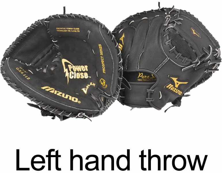 This Mizuno GXC112 Prospect Series youth catcher’s mitt is specifically designed for left hand throw youth catchers. The mitt features Mizuno’s Power Close technology that makes it easier for younger players to close the glove and catch the ball. The GXC112 Prospect glove features a ParaShock palm pad that provides less rebound and less sting.