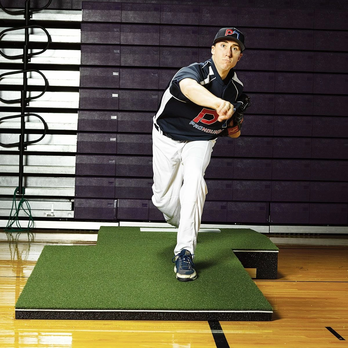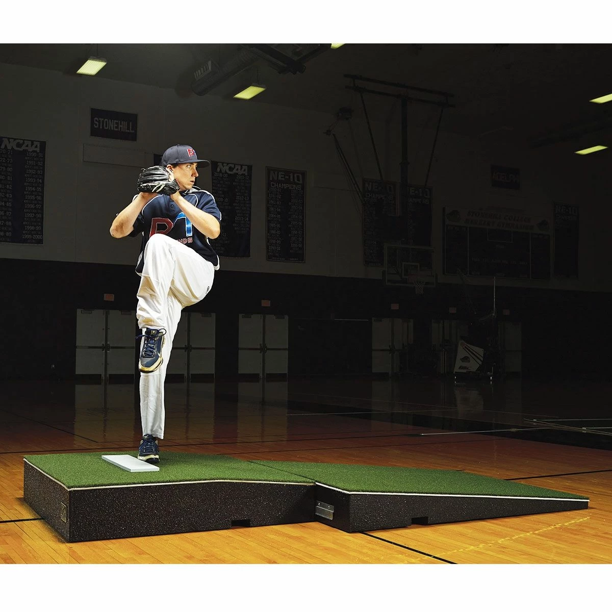 The professional 2-piece indoor pitching mound has a convenient 2-piece design that makes it easier to handle and store. This indoor portable pitching mound is constructed from high-density foam and is protected with Rubber Armor technology for durability. This technology ensures a skid-proof mound that will not damage any gym floor. The combination of the foam core and the Rubber Armor technology distinguishes this two-piece pitching mound as the most durable and lightweight model on the market.