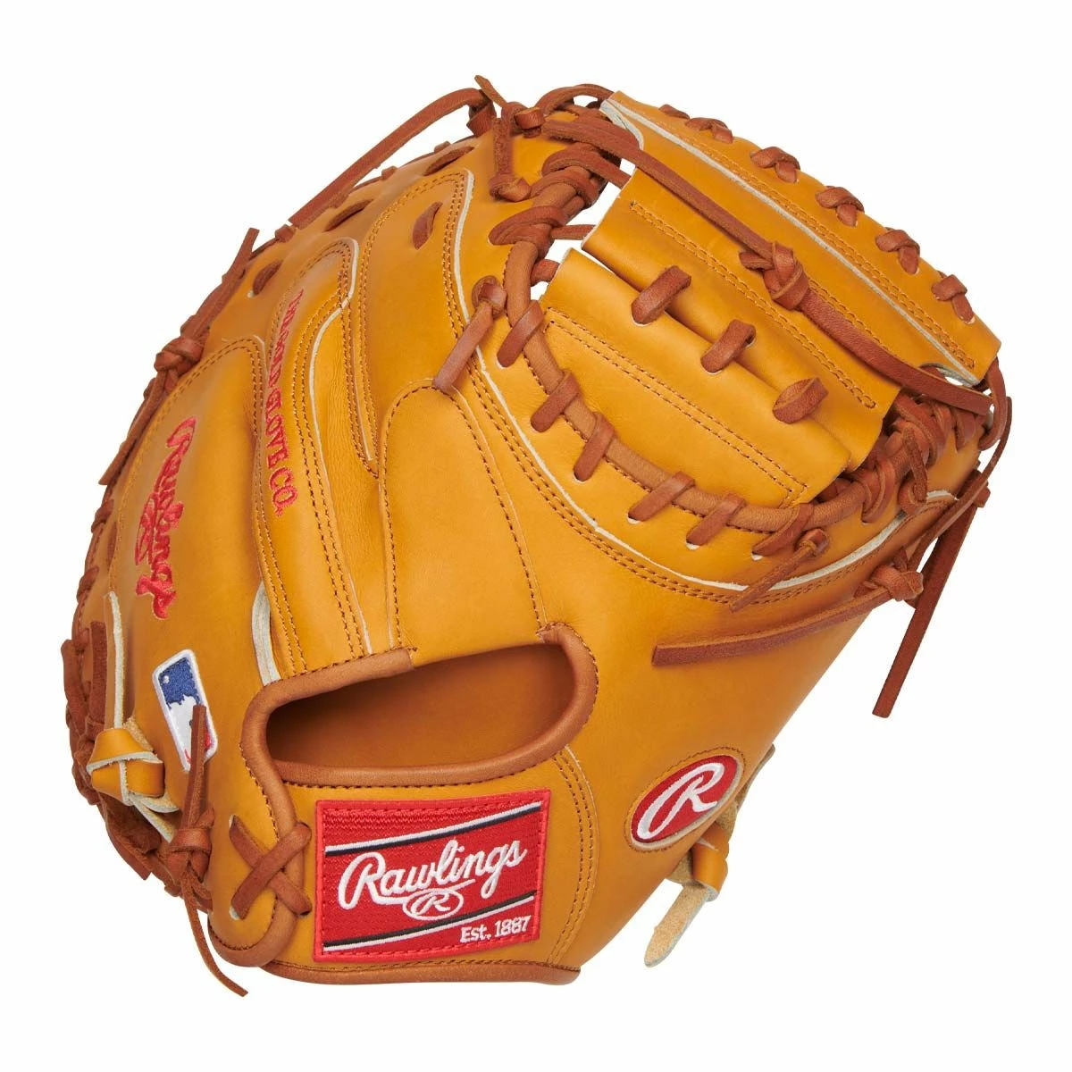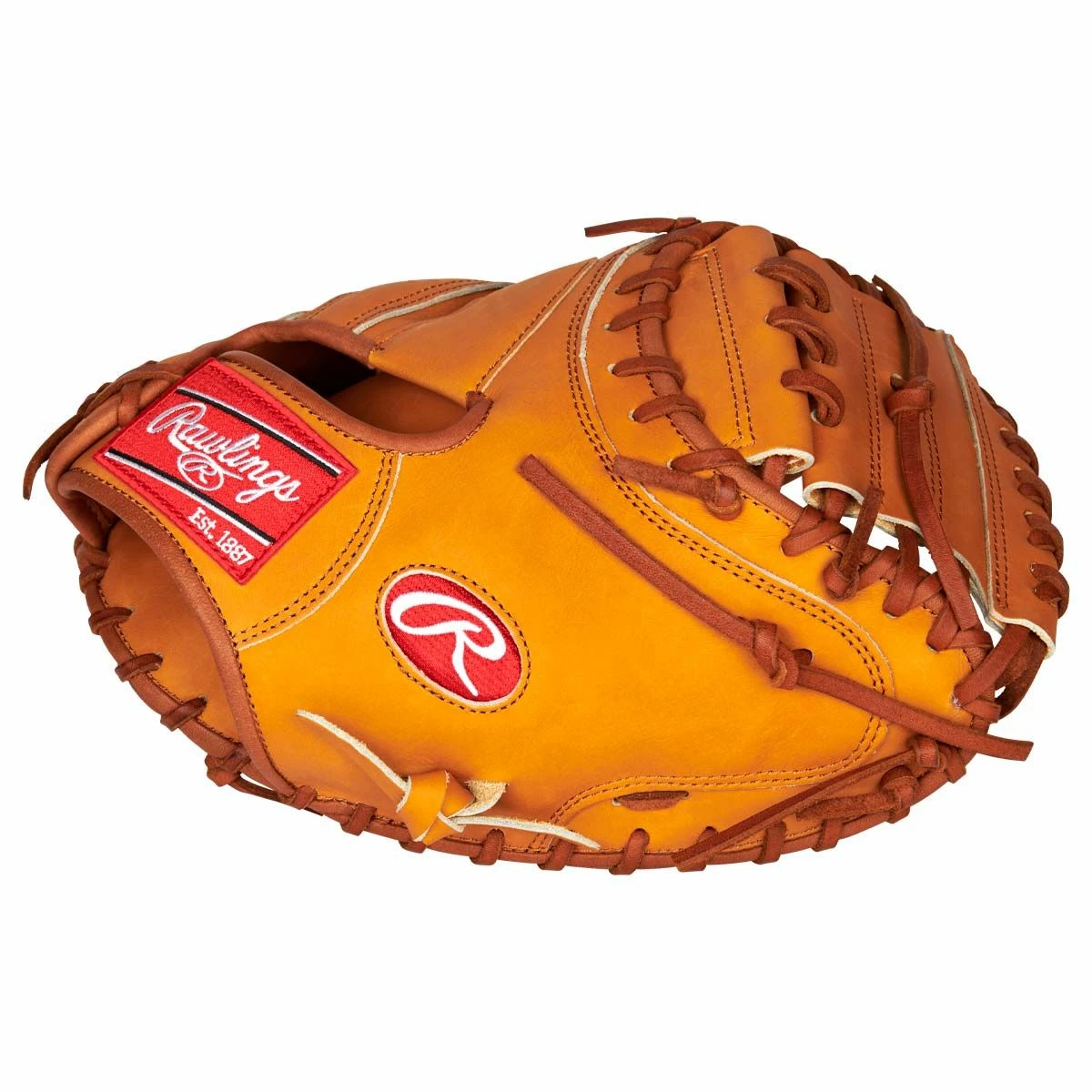 The Rawlings 33″ Heart of the Hide PROCM33T professional catcher’s mitt features the same pro-style patterns as used by top catcher’s in the major leagues.Β The mitt’s top grade USA steer-hide leather construction, deer tanned cowhide palm lining, soft full-grain finger back linings, and padded thumb sleeve provide more durability, comfort, and a better feel than any other catcher’s mitt. The thermoformed hand opening will keep your hand cool and ventilated all game. The glove has a solid 1-piece web design and will break in exactly to your liking, allowing you to handle the hardest fastballs along with the trickiest breaking balls. This 33″ catcher’s mitt will give you the very best protection, durability, and performance behind the plate.