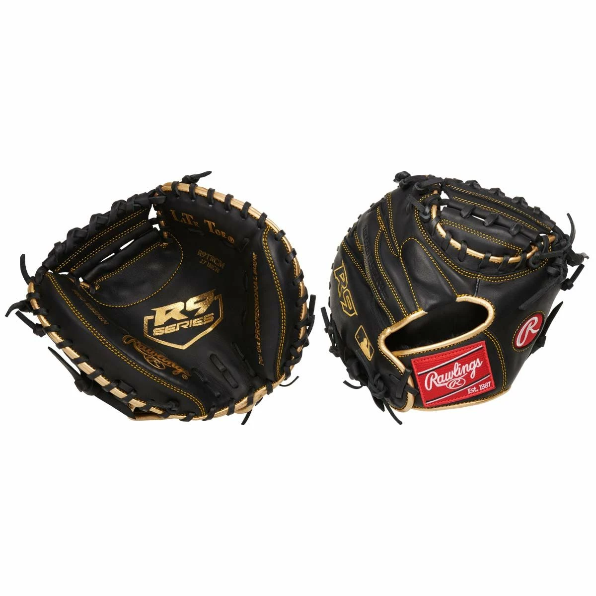 The Rawlings 27β R9 training catcherβs mitt is a great option for transitioning catchers due to its smaller sized pocket compared to traditional mitts. This 27β mitt helps develop quick hands and proper hand placement when catching, increasing the ability to receive balls in the right place down the strike zone. The soft, durable all-leather shell features pro style patterns and a bolstered base design that prevents against sting thanks to the reinforced padding in the palm area. In addition, the thumb loop and finger back liners have extra padding for a soft and comfortable feel. With a 80% break in from the factory, this glove provides a custom and game-ready fit every time you step behind the plate.