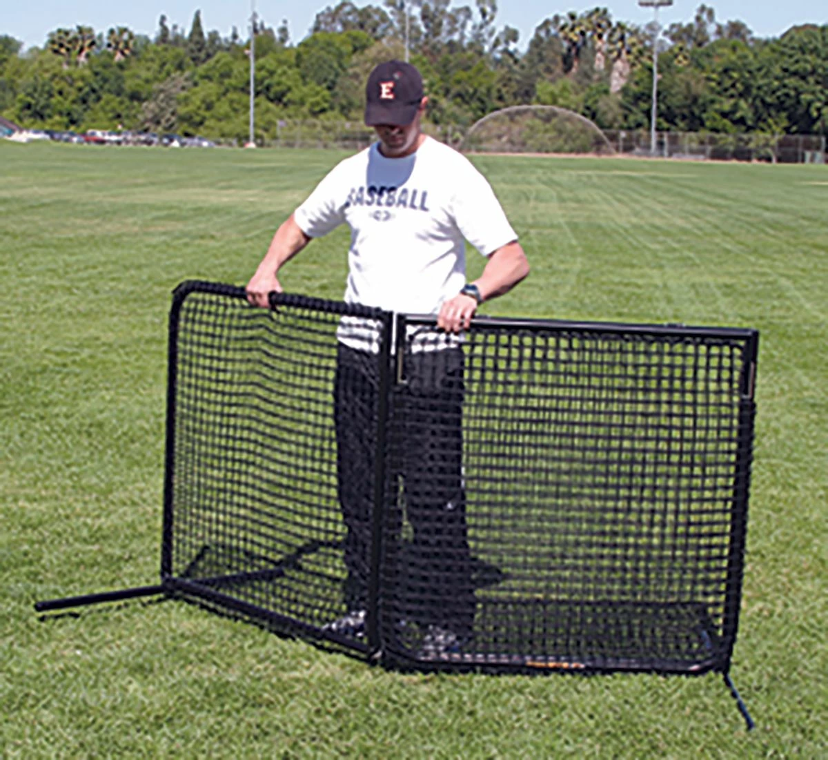 This fully portable L pitching screen measures 7’W x 7’H when assembled and features a two-sided, weather treated net and a durable steel frame. The screen collapses to a size of 41”L x 42’W’ x 6″H, for easy transport.