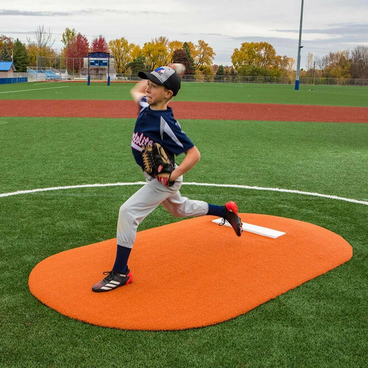This Portolite 6107CLAY portable game pitching mound makes it easy to convert your field from softball to baseball in no time. This model has been improved to include a 1/2″ thick layer of poly under the the turf in front of the pitching rubber to prevent wear through. The full length game mound will feel comfortable to any pitcher. Reinforced foam technology means you have a lightweight yet durable mound that is easy to move and store.