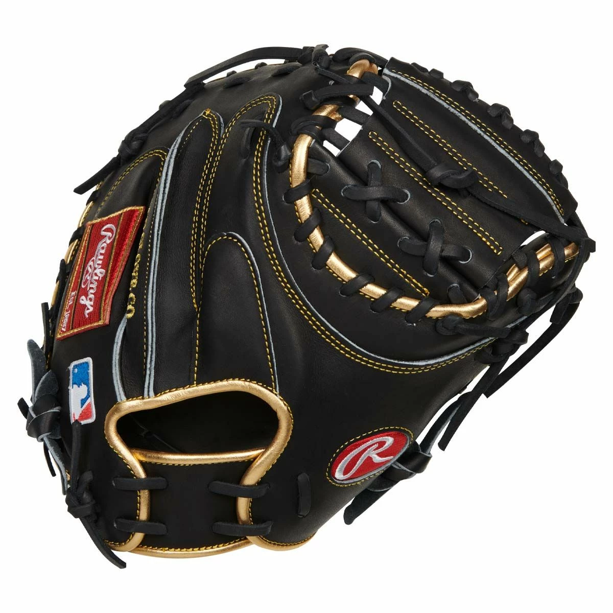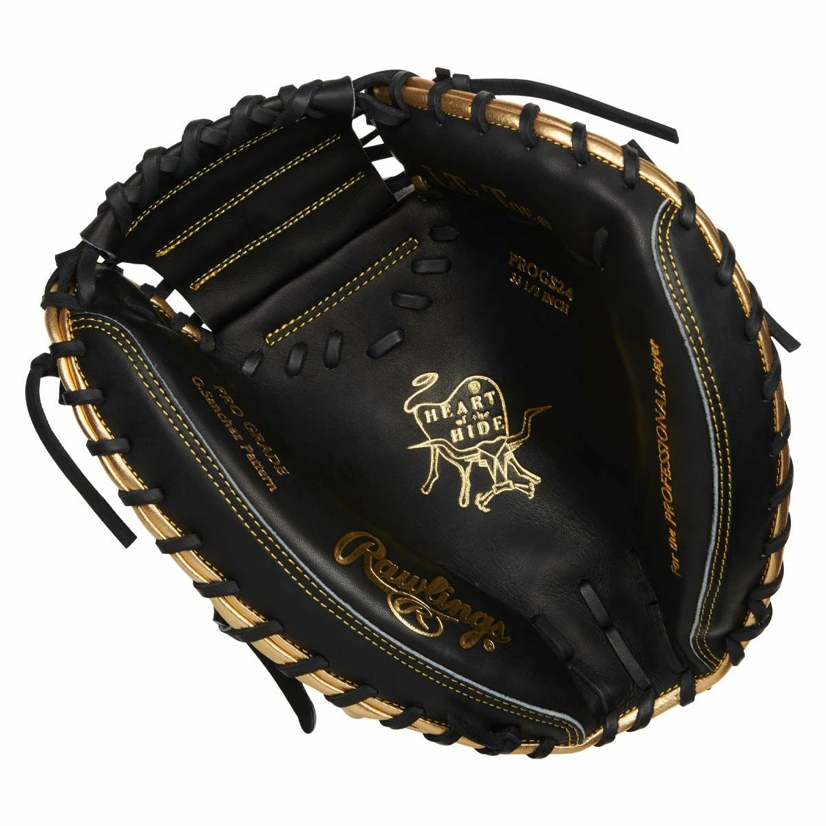 The Rawlings 33.5″ Heart of the Hide PROGS24 professional pattern catcher’s mitt is the same glove model that has performed brilliantly for All-Star catcher Gary Sanchez. The mitt’s top grade USA steer-hide leather construction, deer tanned cowhide palm lining, soft full-grain finger back linings, and padded thumb sleeve provide more durability, comfort, and a better feel than any other catcher’s mitt. The thermoformed hand opening will keep your hand cool and ventilated all game. The glove has a solid 1-piece web design and will break in exactly to your liking, allowing you to handle the hardest fastballs along with the trickiest breaking balls. This 33.5″ catcher’s mitt will give you the very best protection, durability, and performance behind the plate.Β