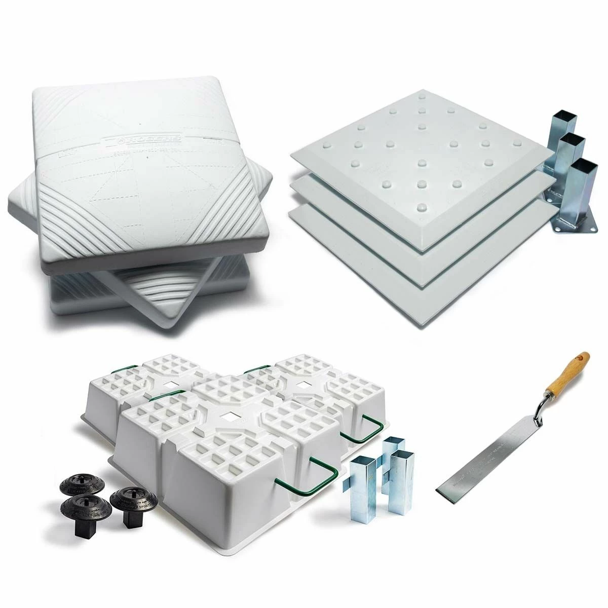 - Set includes (3) rubber base tops, (3) base plates, (3) anchors & plugs, (1) digout tool