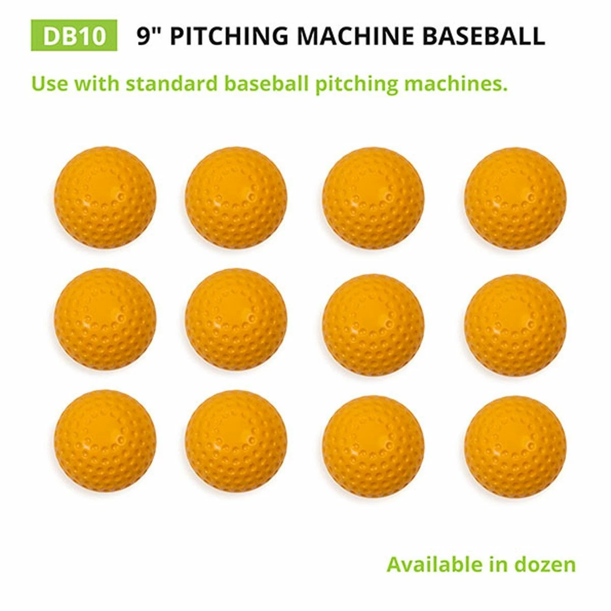 Dimpled Pitching Machine Baseballs come in a pack of 12 and are made of a plastic and vinyl composite. They feature a dimpled design and are perfect for use with any standard pitching machines. The bright yellow color makes these pitching machine balls visible from almost anywhere!