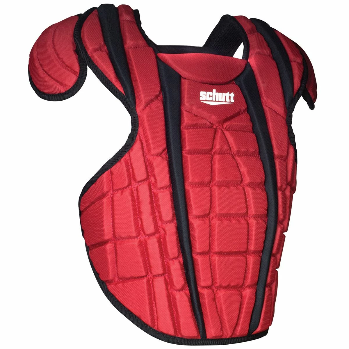The Schutt Air Maxx Scorpion Chest Protector has low-profile and lightweight construction for ease of movement and flexibility. It’s contour design provides optimal coverage for baseball and softball players by wrapping around the ribs while also creating a “dead-zone” in the blocking area. It’s new V-Back harness system connects further down the back creating a more secure fit and less movement when throwing or blocking. This new design allows more adjustability.