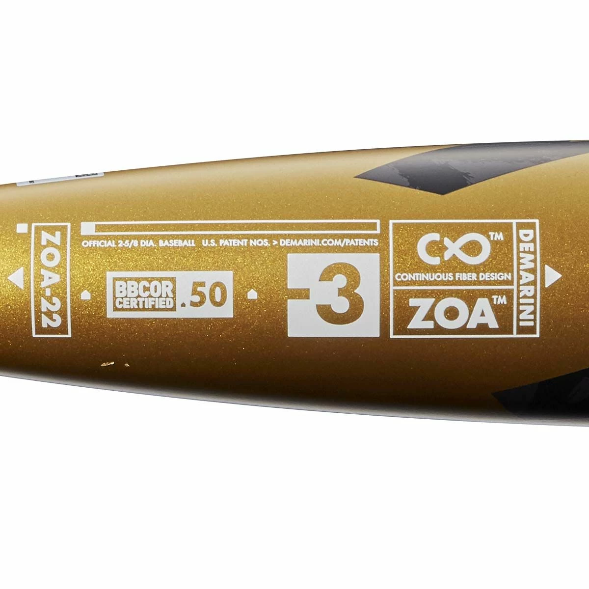 The DeMarini Zoa BBCOR is the first in a new generation of baseball bats featuring the innovative Continuous Fiber composite barrel that combines power, bat speed, and barrel control to give the hitter an elite profile like never before. The 2-5/8″ barrel is elongated, and its stiff composite material maximizes energy transfer on contact. This bat’s two-piece construction improves weight distribution that allows for superior balance, and the Anomaly Connection and End Cap optimize the bat’s performance with a stiffer handle and barrel integrity. The DeMarini Zoa is BBCOR certified and is backed by a 1-year limited warranty.