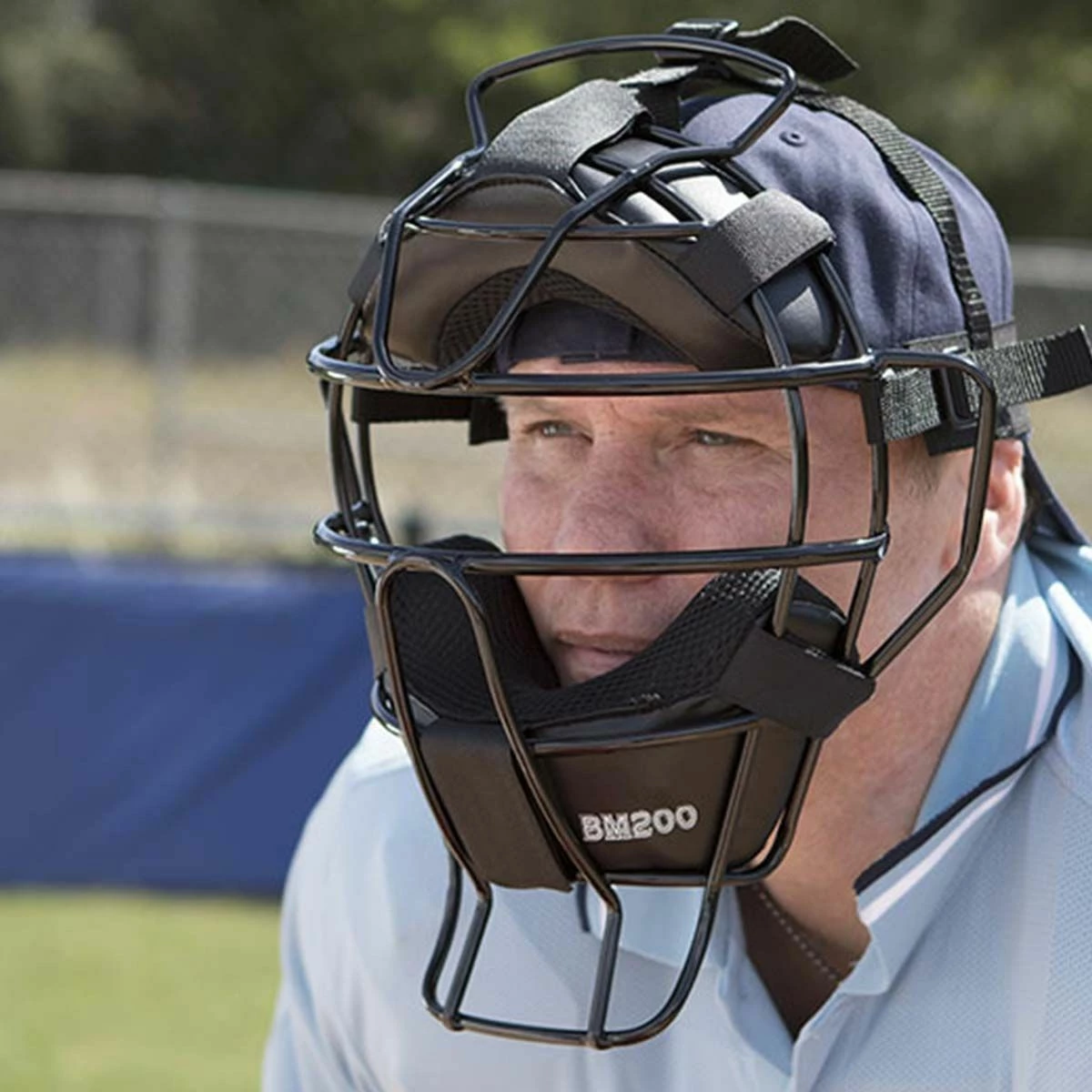 The Champion Ultra Lightweight umpire face mask is made from a hollow wire construction to give you the lightest mask on the market, weighing only 18 oz. This baseball umpire face mask has forehead, ear, and throat guard protection to keep you safe behind the plate. The umpire mask for sale has an adjustable harness and DryTek premium leather pads for efficient sweat-wicking.