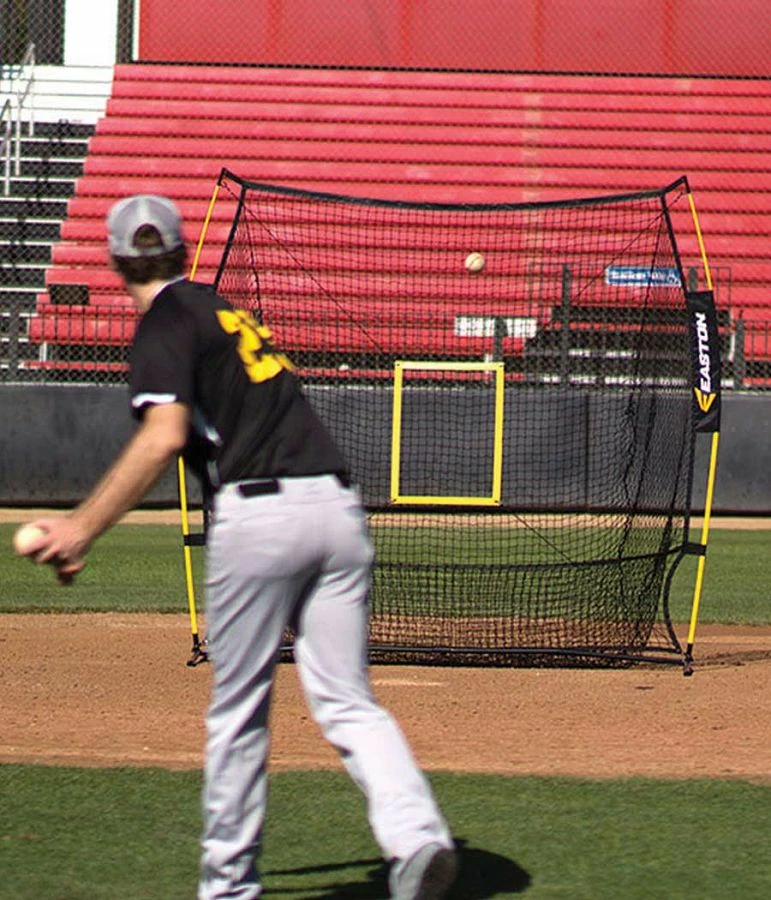 Easton’s 7′ XLP pop-up net has a massive target area and extra large catch pocket that will collect balls from tee work and soft toss drills. Β The removable red target provides a strong visual for pitching and fielding practice. The net sets up and takes down quickly so coaches can throw this great training aid in the car for practices or away games. Β It is also a great training aid for the back yard!