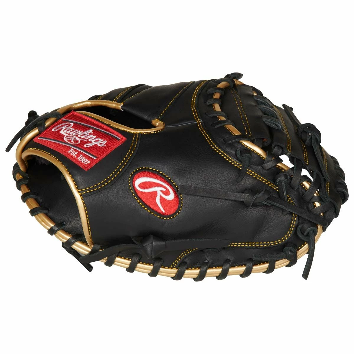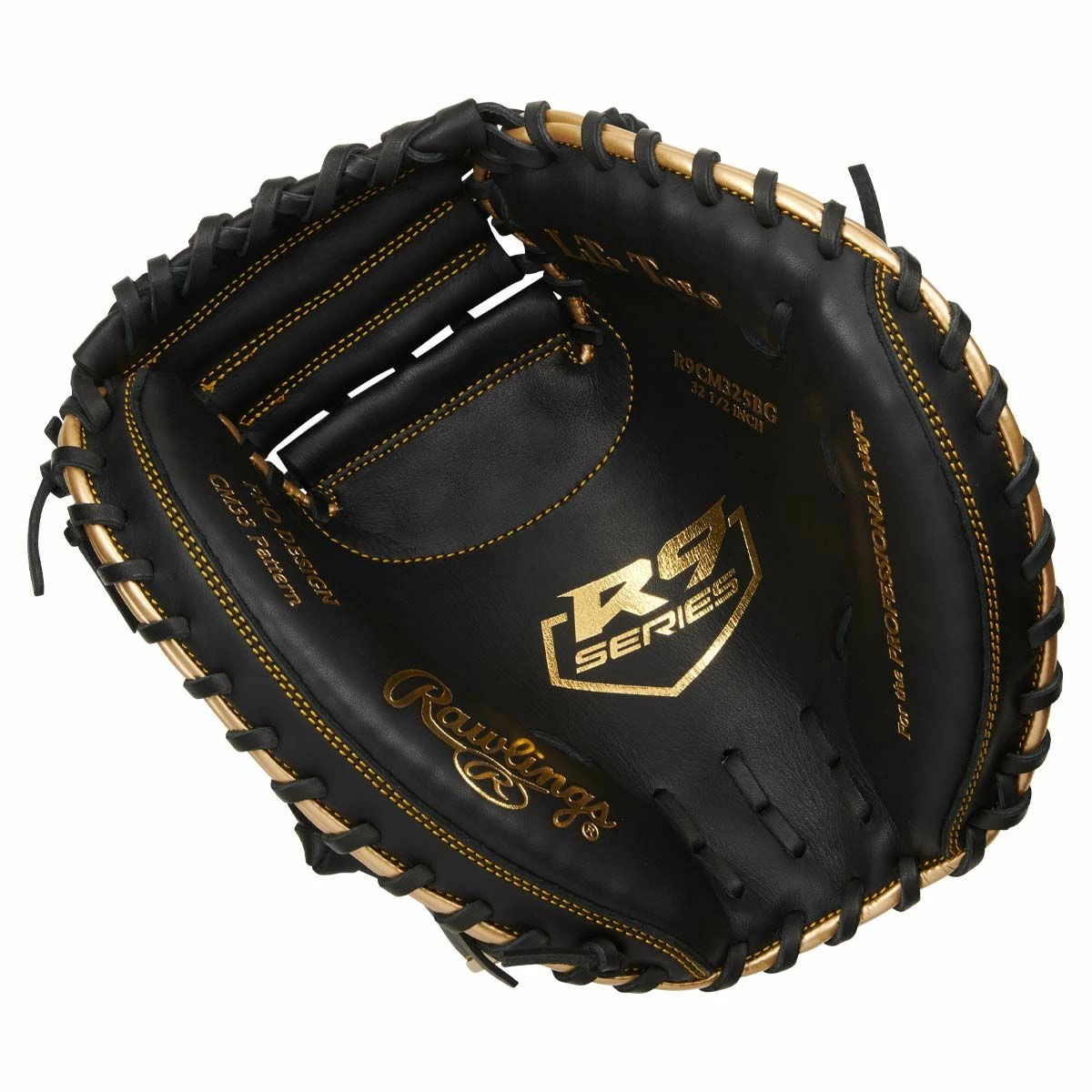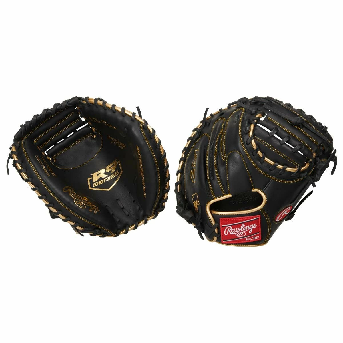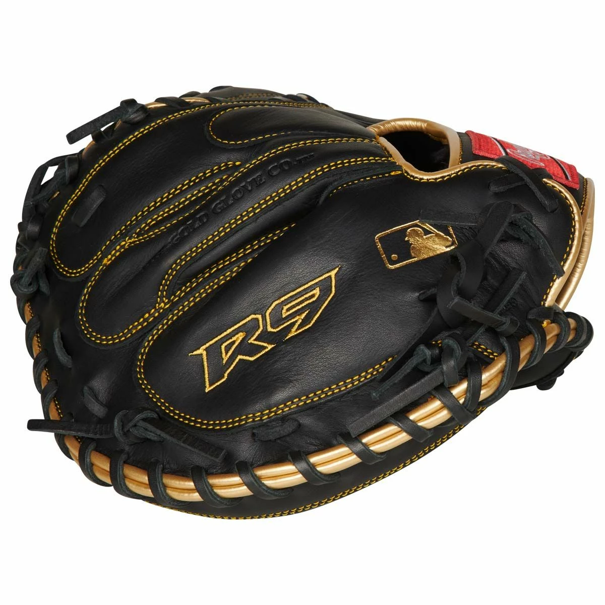 The Rawlings 32.5β R9 catcherβs mitt is an excellent option for catchers looking for a comfortable and game-ready mitt. The soft, durable all-leather shell features pro style patterns and a bolstered base design that prevents against sting thanks to the reinforced padding in the palm area. In addition, the thumb loop and finger back liners have extra padding for a soft and comfortable feel. With a 80% break in from the factory, this glove provides a custom and game-ready fit every time you step behind the plate.
