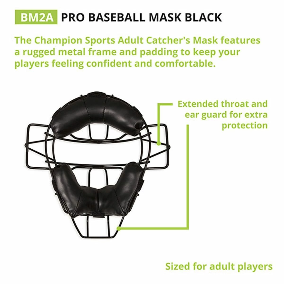 This umpire face guard from Champion Sports is sized for adults and features a solid wire frame with synthetic pads for comfort. The durable harness easily adjusts for a custom fit and holds the mask in place. The mask’s extended throat and ear guard provides extra protection while you are calling balls and strikes.