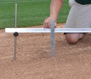 The mound slope gauge determines the correct slope of your pitcherβs mound. This gauge features a heavy-duty aluminum construction, metal ruler for measuring and two support rods.