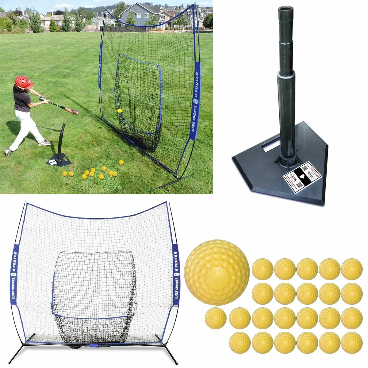 Get your tee work in anywhere with the portable Jugs baseball batting practice package. This package has just what you need to run hitting drills including a Hit Like a Pro hitting tee, an 8 foot travel hitting screen and 2 dozen yellow dimpled sting-free baseballs. The durable rubber batting tee features an adjustable, ribbed upper tee tube that prevents the tube from slipping during practice, a heavy-duty solid rubber base that keeps the tee stable, and a grip-n-go handle for easy transport. The portable 8′ travel hitting screen is perfect for tee practice, toss practice or soft toss practice and comes complete with a heavy-duty 43โ nylon travel bag.