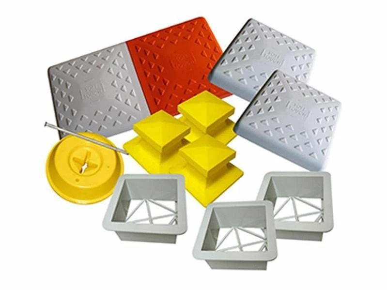 - Set includes (2) A Series bases, (1) A Series double first base, (3) 7″ plastic ground anchors, (3) tapered plugs, (1) 12โ spike, (1) spike-down disk