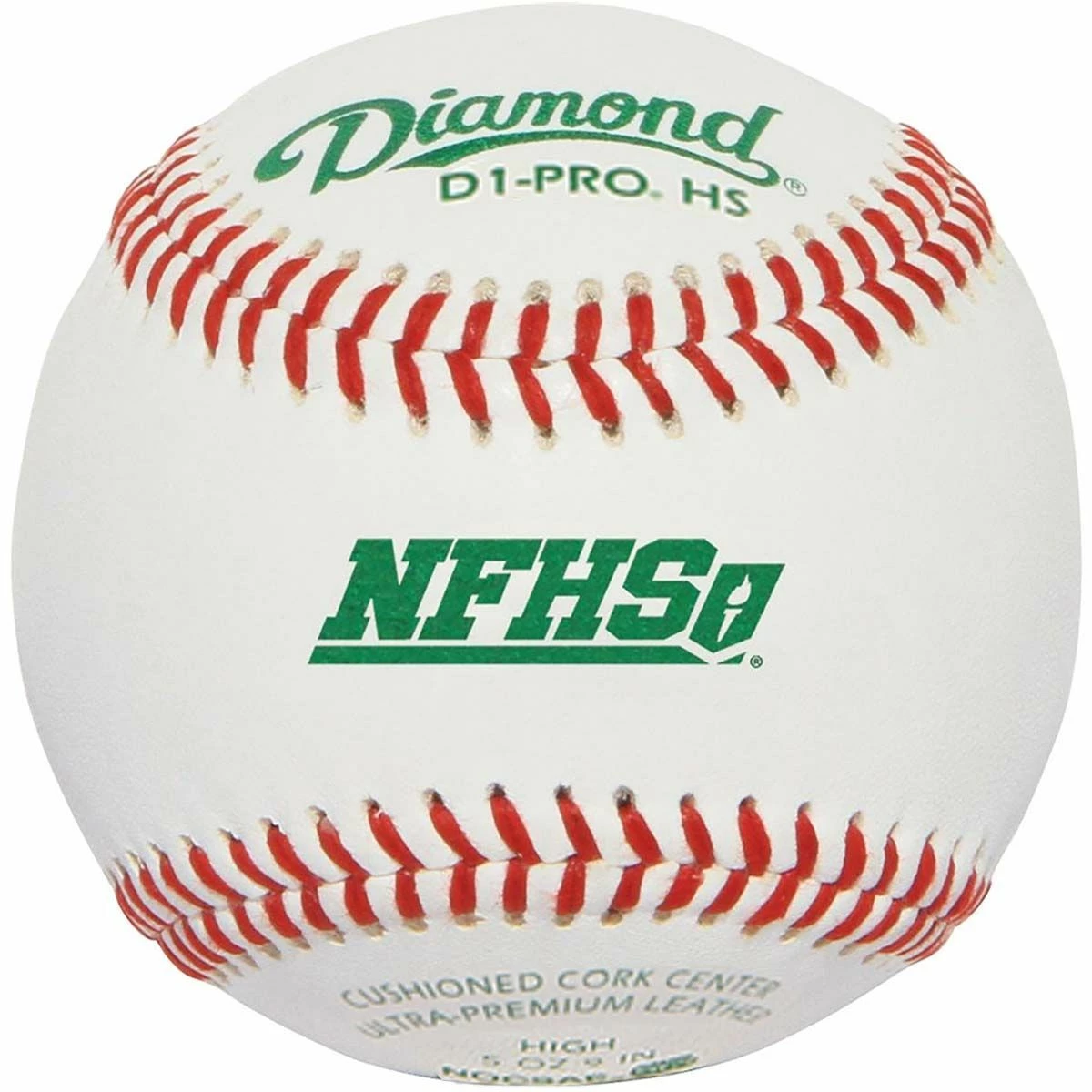 The Diamond NFHS Pro Baseball w/NOCSAE stamp features DriCore technology to prevent a baseball from absorbing water and gaining weight in wet field conditions. DriCore will accelerate the drying time if a ball is subjected to extreme water conditions, making the baseball playable sooner. Additional features of D1-PRO HS Diamond baseballs include A-1 Grade grey wool winding, a cushioned cork center, ultra-premium full-grain leather cover for superior performance and durability, and Diamond Seam (raised red seams) for excellent control and grip. This NFHS and NOCSAE approved baseball is considered Diamond’s best offering for a high school ball.