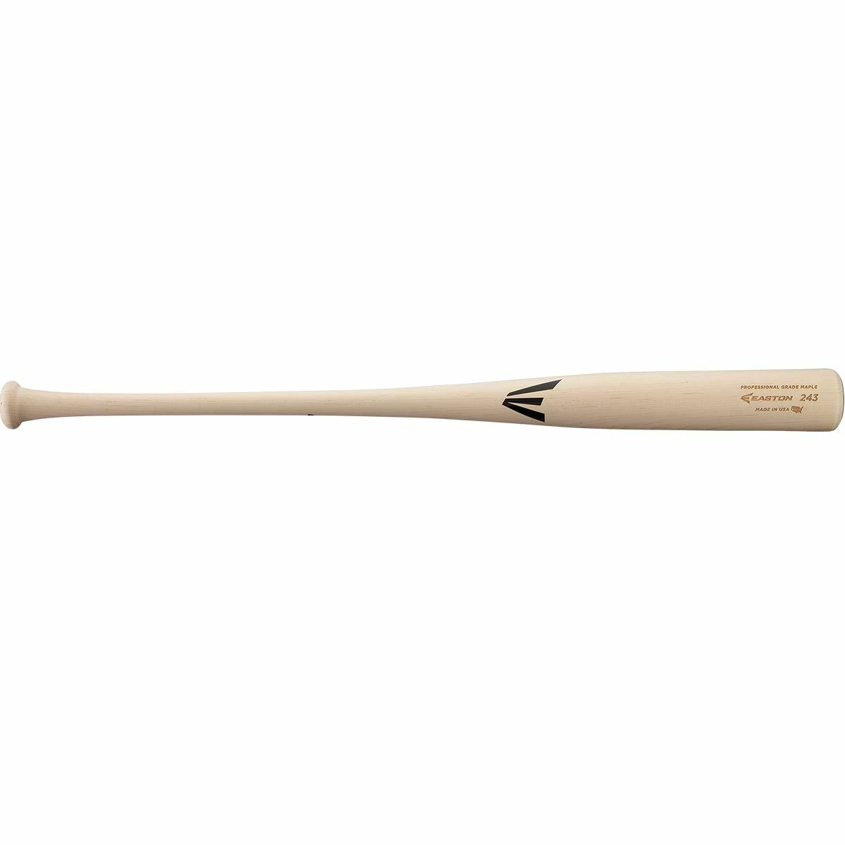 The Easton Pro 243 maple wood baseball bat is made with ultra-durable rock-hard maple, hand-crafted in the USA, and features a large barrel design that is perfect for power hitters. The 243 pattern offers a long sweet spot with an end-loaded feel for the power swing. Its medium handle size allows hitters to whip the bat through the hitting zone with authority. A traditional knob with a cupped end and a MLB standard ink dot complete the design of the Easton Pro 243 Maple.