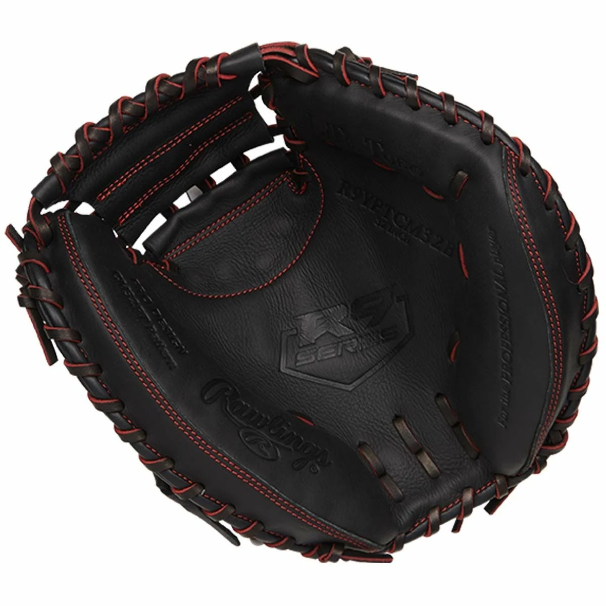 The Rawlings R9 series pro taper Catcher’s 32″ baseball mitt with 1-piece solid web, features, soft, durable all-leather shells designed to be game-ready. With pro style patterns and a reinforced palm pad for impact reduction, this R9 series Pro Taper catcher’s mitt is perfect for youth players.