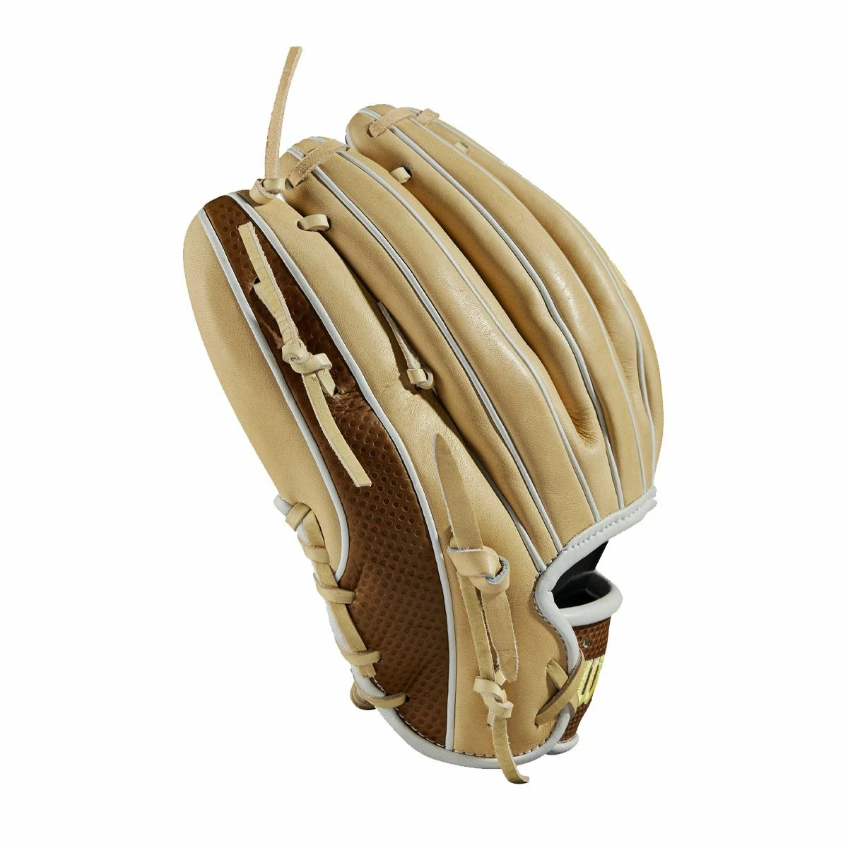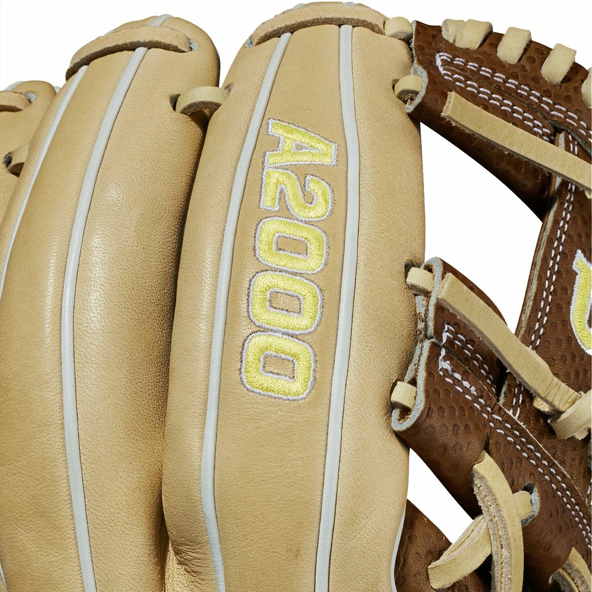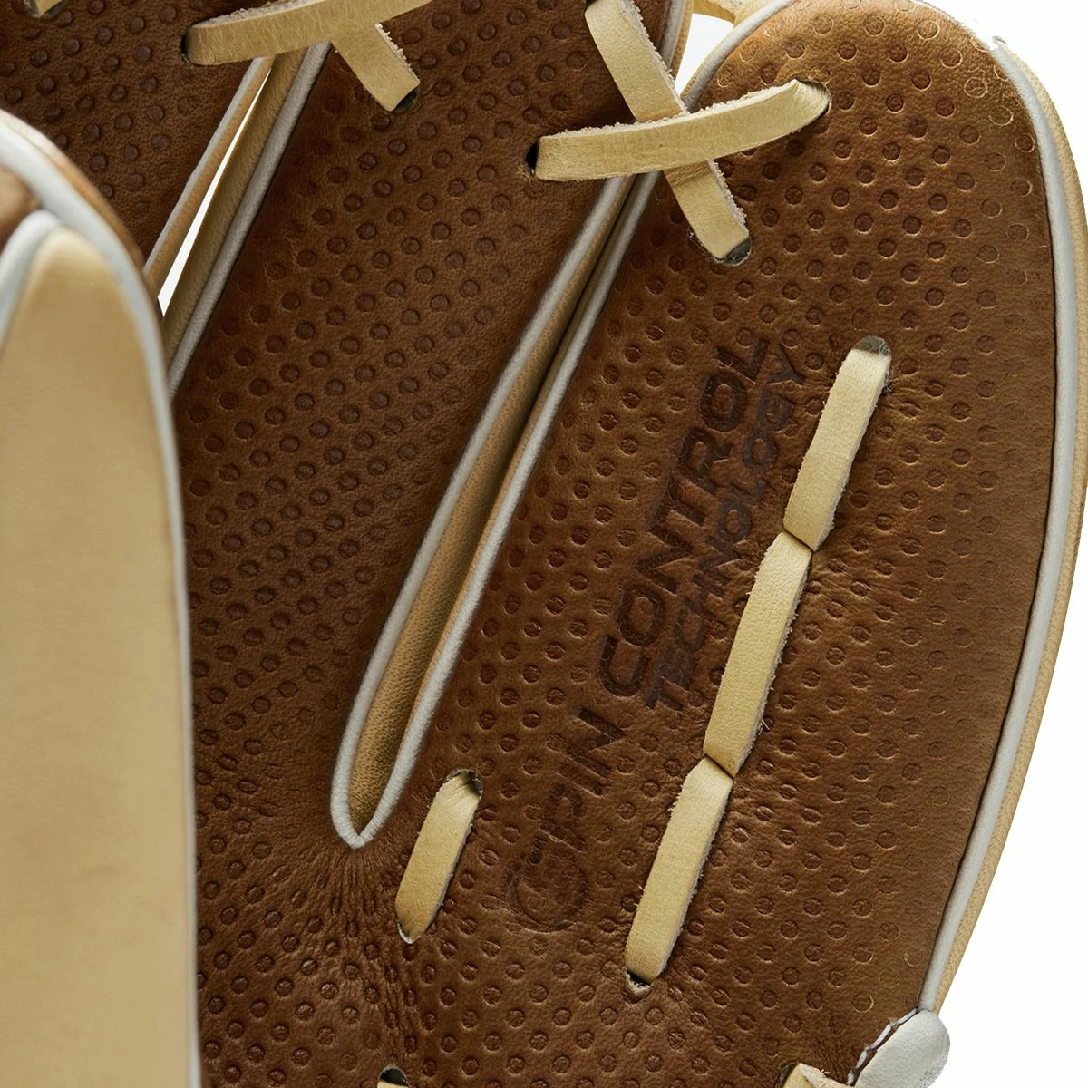 The Wilson A2000 11.5″ Spin Control baseball glove is designed to drastically decrease the spin of balls that enter this glove, and is perfect for infielders looking to make tough plays look easy. The glove’s Spin Control technology and dimpled palm slow the spin of the ball when it hits the glove, making it much easier to grab the ball. This glove’s Pro Stock Leather is modeled in blonde and saddle colors to give it a rugged look, and its ProLux liner creates a much richer, softer feel on your hand.