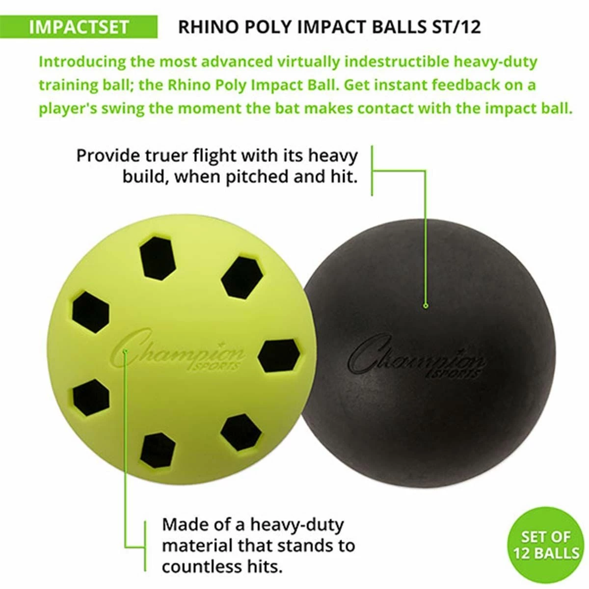 The Rhino Poly impact training baseballs are perfect for daily training. These training baseball balls can withstand thousands of hits thanks to the durable material that they are created with. They are made with a pop-back technology which collapses upon contact without cracking. These are sold as a set of 12 balls and are your standard 9″ baseballs.