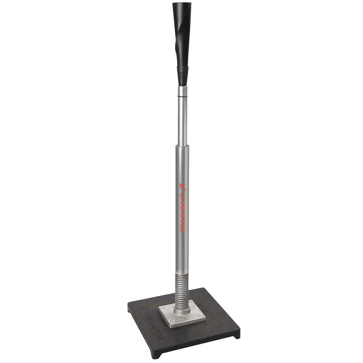 The Champro Brute spring loaded batting tee rebounds after every hit, creating much less resistance on the hitter’s swing. This tee has a height range of 23 inches to 43 inches, and its eight pound weighted base gives added support. The feet on the base allows for grip on all different surfaces. This tee is portable, easily collapsible, and has a two year warranty.