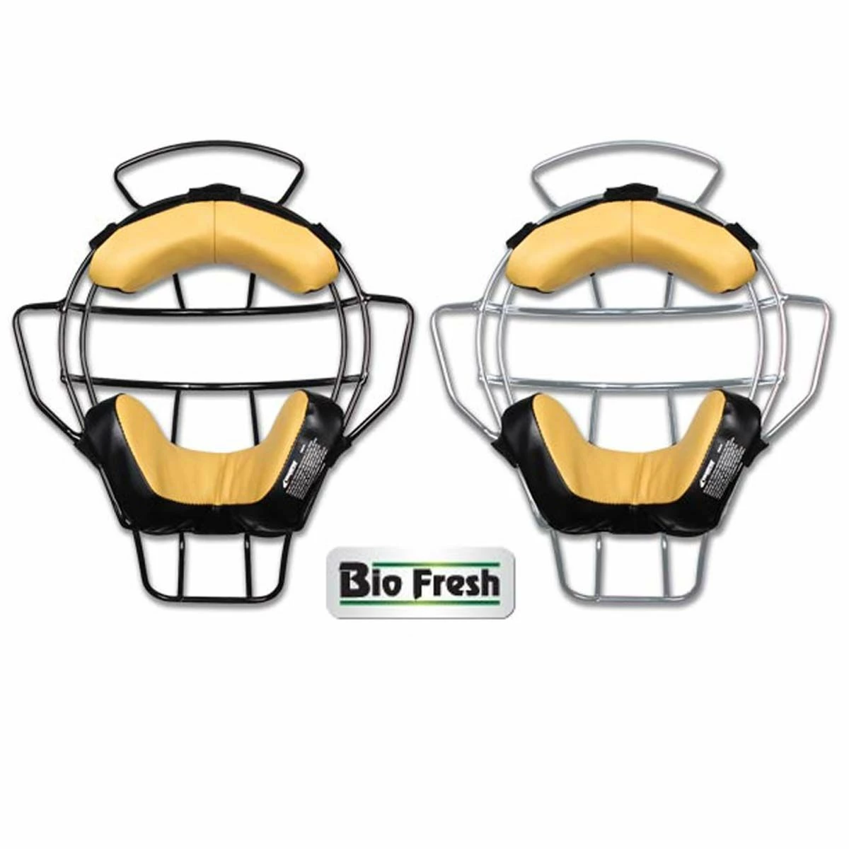 The Bio-Fresh umpire mask from Champro is designed for all game comfort with its lightweight and durable construction. The frame is made from hollow wire steel and features ear, throat, and oversized forehead extensions for ultimate protection behind the plate. Ergo-Fit leather pads ensure the most comfortable and secure fit for those long-lasting games. The leather pads are fortified with Champro’s Bio-Fresh antimicrobial pad treatment that guards against deterioration from mold, mildew stains and bacterial odors.