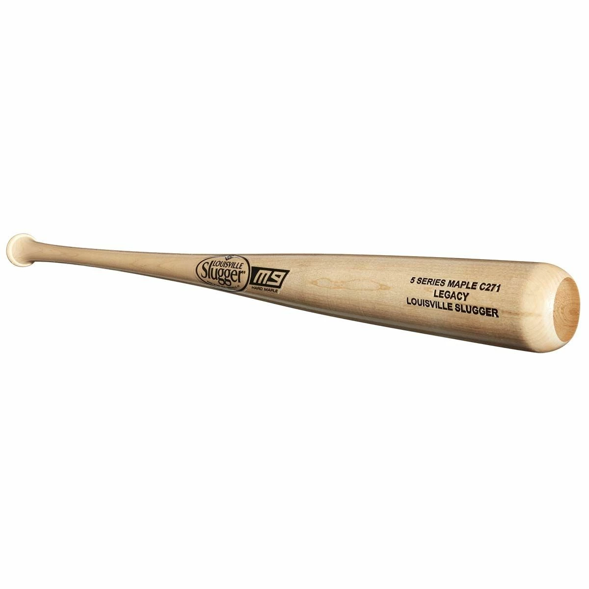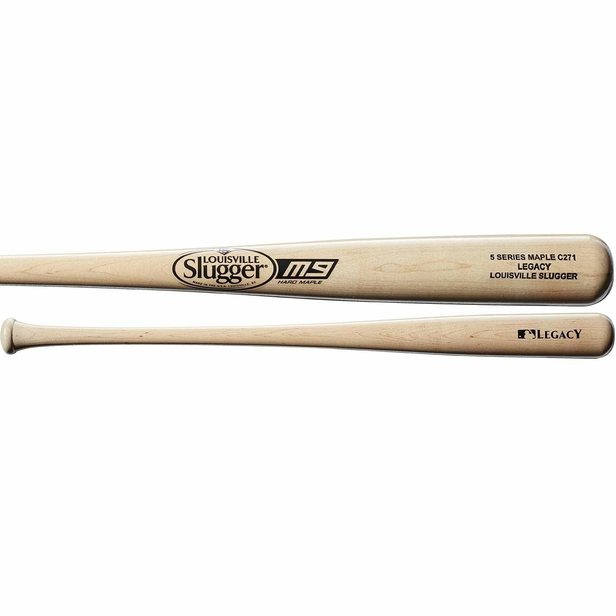The 2019 Louisville M9 C271 Legacy Maple wood baseball bat is ideal for high school, college, adult senior league and minor league players alike. This bat features a natural gloss finish with black branding, is equipped with a standard handle, a medium barrel and a max knob taper, creating a versatile bat conducive to power hitters and contact hitters. This bat is preferred by nearly three-in four Major League players, maple bats are known for their durable surface strength and stiffer feel.