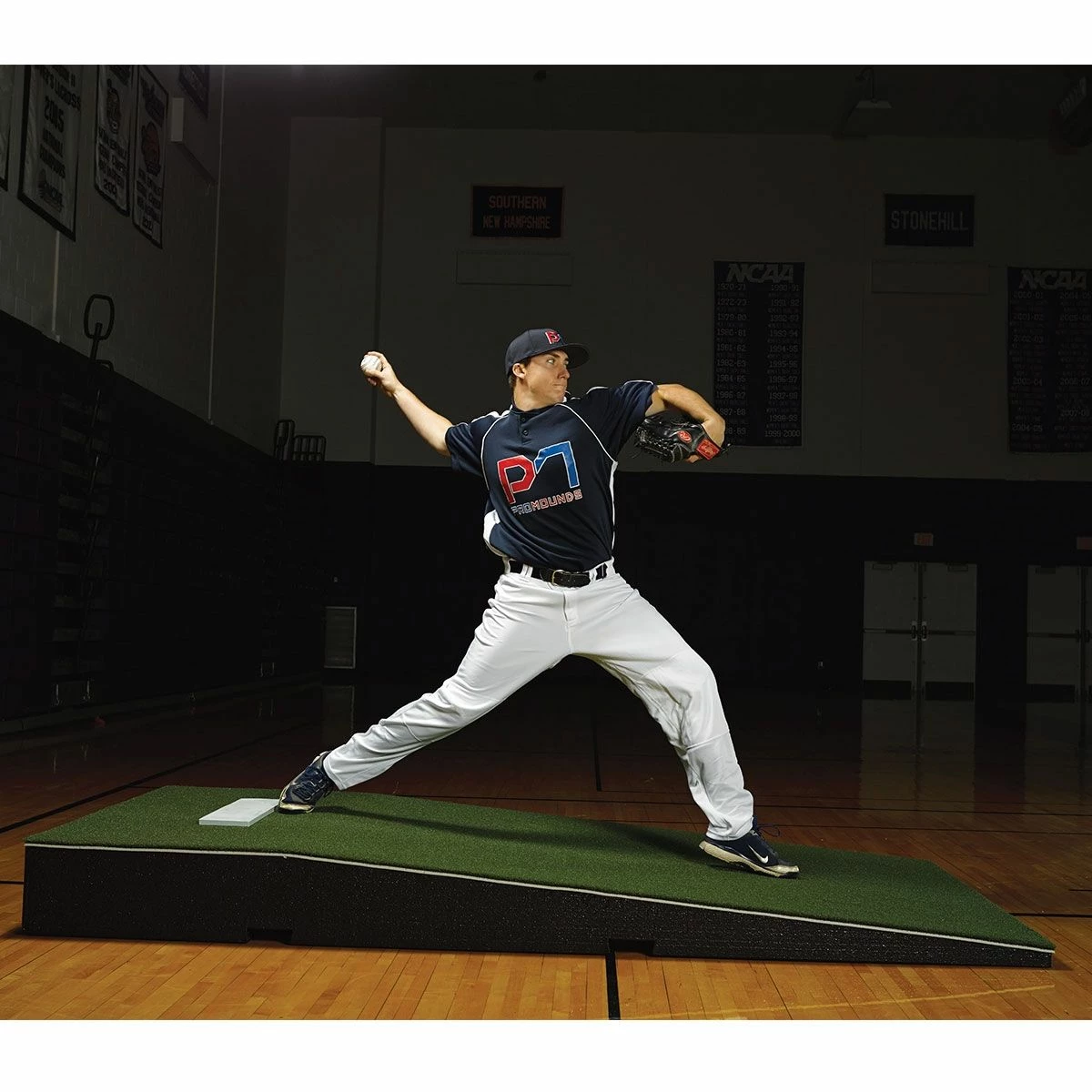 The Promounds Pro portable indoor pitching mound is constructed of high density foam, rubberized armor and spike-resistant turf. This rubber armor is skid proof and will not damage any gym floors. The combination of the foam core and the rubber armor distinguishes this pitching mound as the most durable and lightweight models on the market today. This indoor portable pitching mound is ideal for off-season training in the gym.