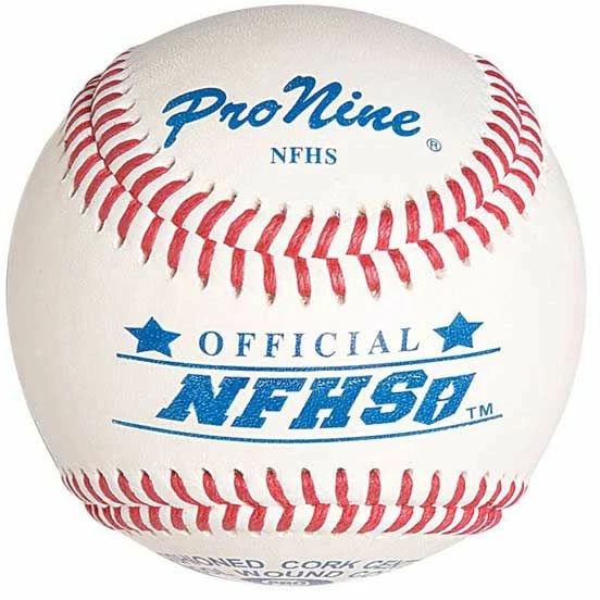 Pro Nine NFHS official baseballs are NFHS approved for regular season play. These baseballs have a full grain leather cover for added durability, precision raised seams for improved grip, premium wood windings, and a cushioned cork center center.
