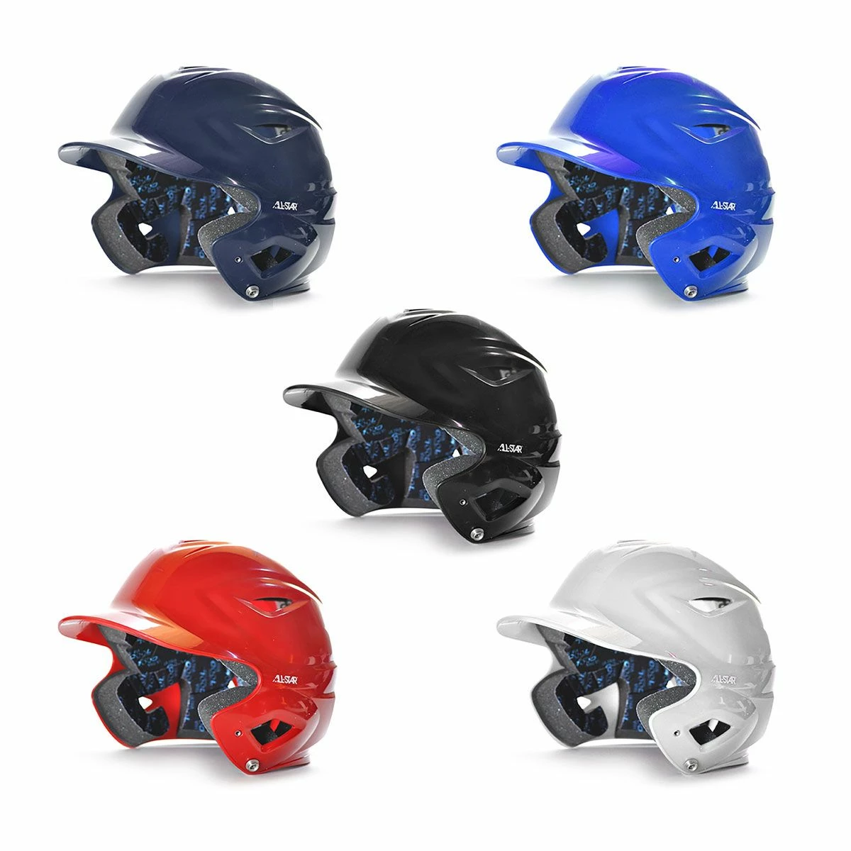 The All Star BH30 S7 solid gloss finish batting helmet uses a high impact resistant ABS shell, which is designed for maximum coverage in critical areas (the back of the neck and the cheek area). The System Sevenโข batting helmet features an interior design that uses Ultra-Cool lined foams to keep you cool and dry even on the hottest days.ย Large vents around the helmet also help you stay cool and are strategically placed for maximum shell strength. This helmet comes with hardware for face masks, face guards, and chin straps.