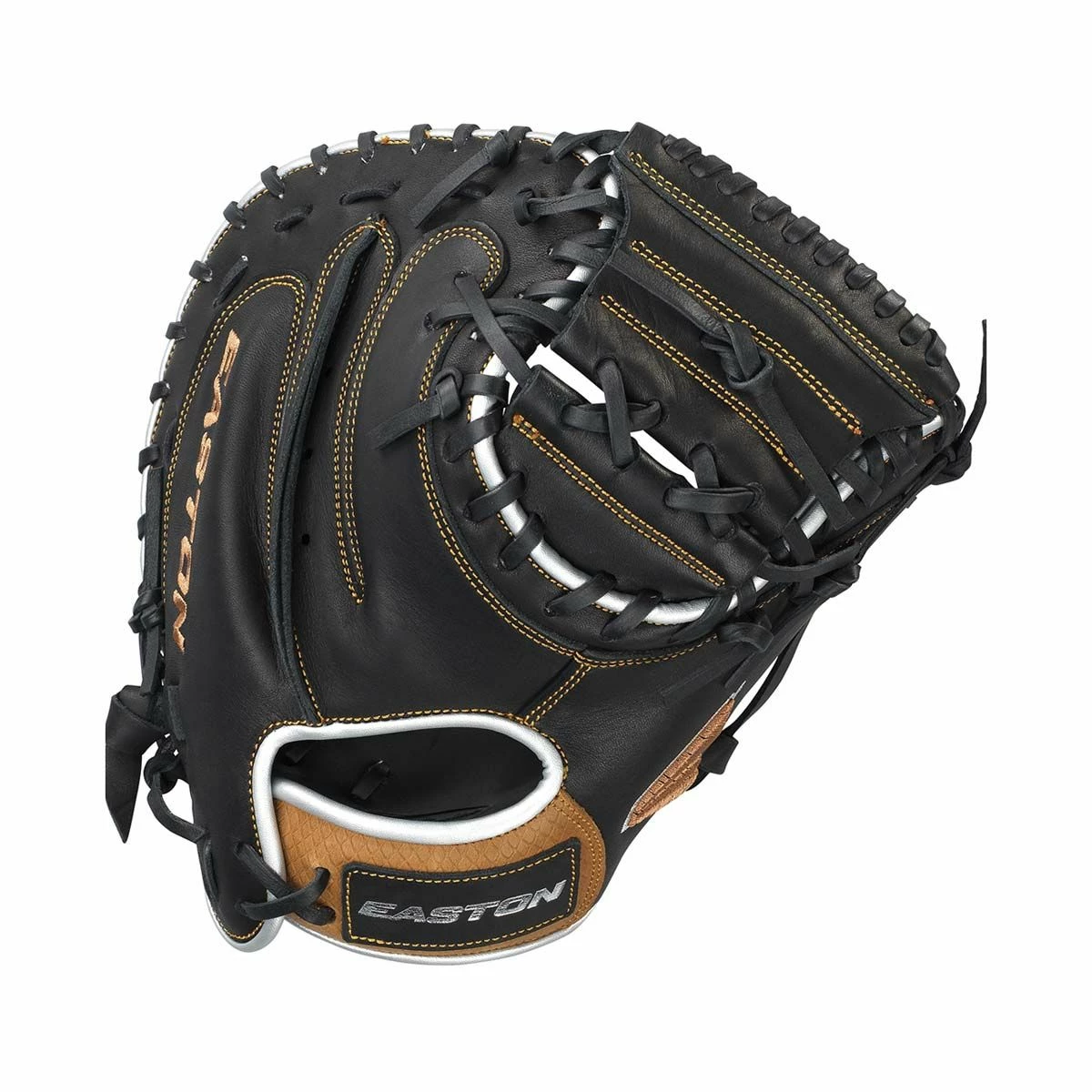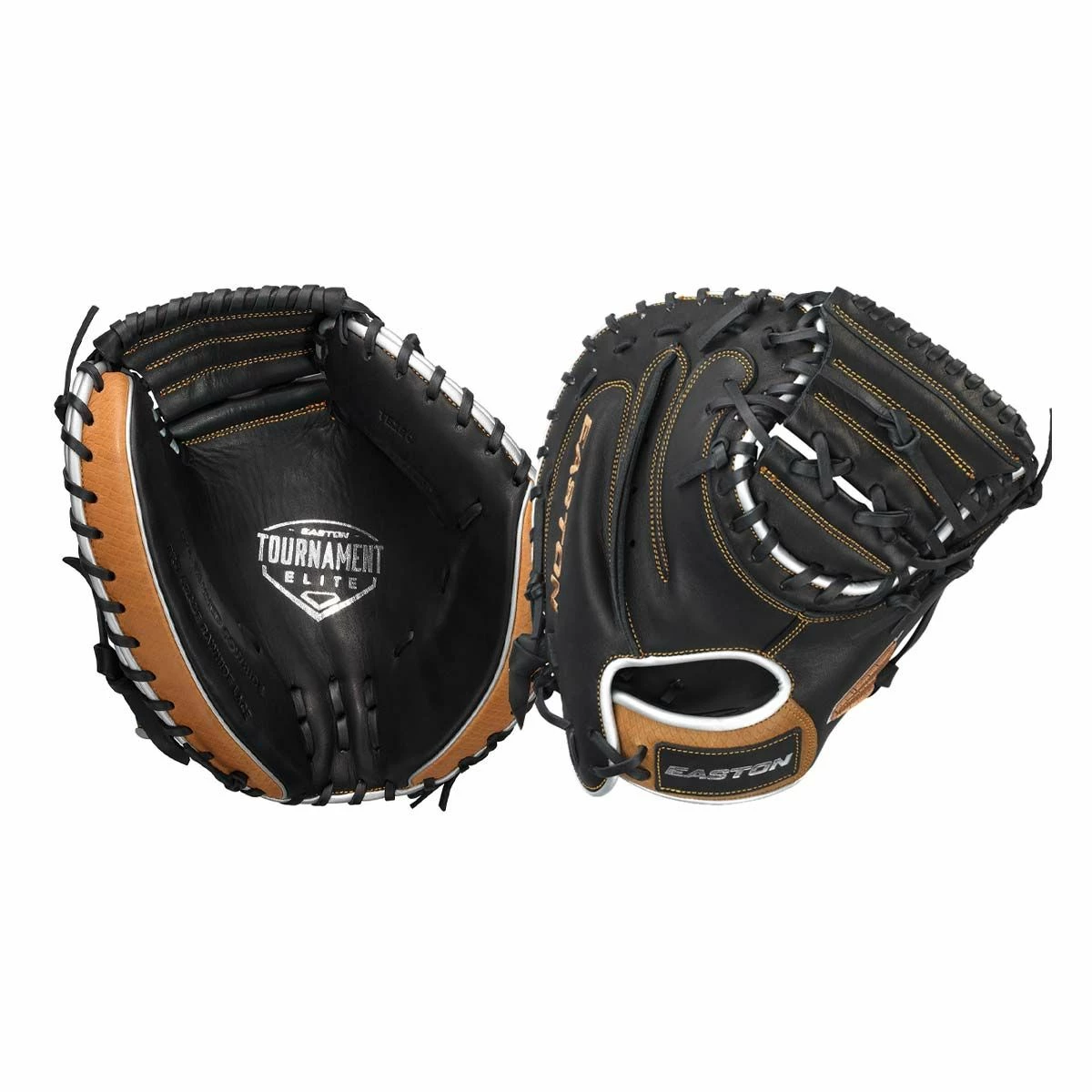 The Easton TE2BC Tournament Elite youth catcher’s mitt with 1-piece solid web features a soft, durable all-leather shell designed for maximum comfort. The 32.5″ mitt has size patterns constructed specifically for the 14u age level. With the Ideal Fit System, the glove is easily adjustable with its professional-style open back and is extremely comfortable thanks to its soft micro-fiber wrist lining and its repositioned pinky hole. The mitt also features snakeskin embossed leather accents and a professional-grade rawhide lace, making it one of the most stylish on the market.