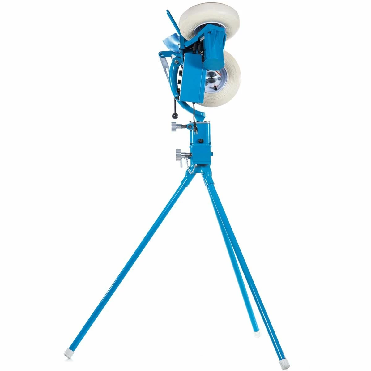 The easy-to-use Jugs BP3 Baseball Pitching Machine is a state-of-the-art 3-wheel machine designed to replicate various speeds, movement and location of baseball pitches. Without the hitter knowing, this machine can go from fastballs to changeups and throw 9 different pitches at the touch of a button, reaching speeds between 40-90 MPH. The included hand-held remote control keychain allows you to have control near the machine or even from behind the hitter. The BP3 has a 3” LCD display that reads the pitch type and desired pitch speed which can be changed by turning the Select-A-Pitch™ Dial. The dial throws various types of pitches including fastballs and changeups, right and left-handed curveballs and sliders, right and left-handed cutters and split-finger fastballs. A fastball/changeup hitting circuit option allows the machine to automatically change between fastballs and changeups, giving hitters a “real” pitcher vs hitter experience. Patented Grip-Tite 12” non-marking pneumatic tires average a 20-year life expectancy, providing superior pitch accuracy with tires that won’t melt, crack or chunk like solid tires. The always see the ball™ delivery system provides the hitter with an uninterrupted view of the ball throughout the entire pitch to realistically time their stride. With vertical and horizontal macro adjustments, the BP3 can throw deep 325’ fly balls and rotate 360 degrees to utilize the entire field. The Quick-Snap leg attachment is easy to set up without the need for a t-handle or leg clamp. At 64” tall, the BP3 delivers pitches at a realistic height and at a downward plane.