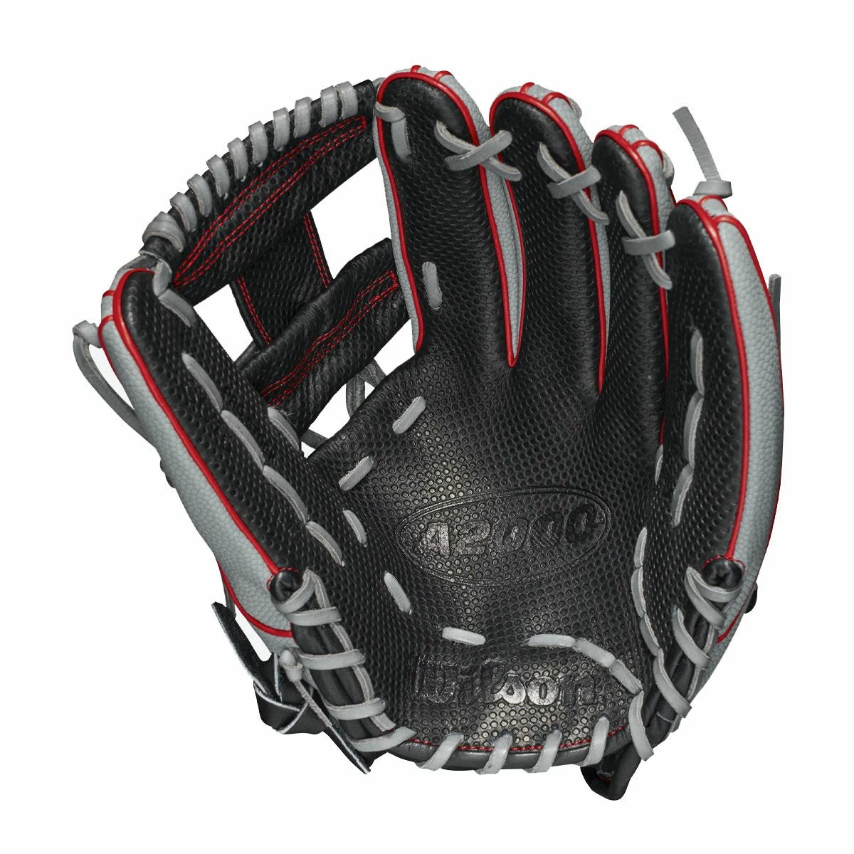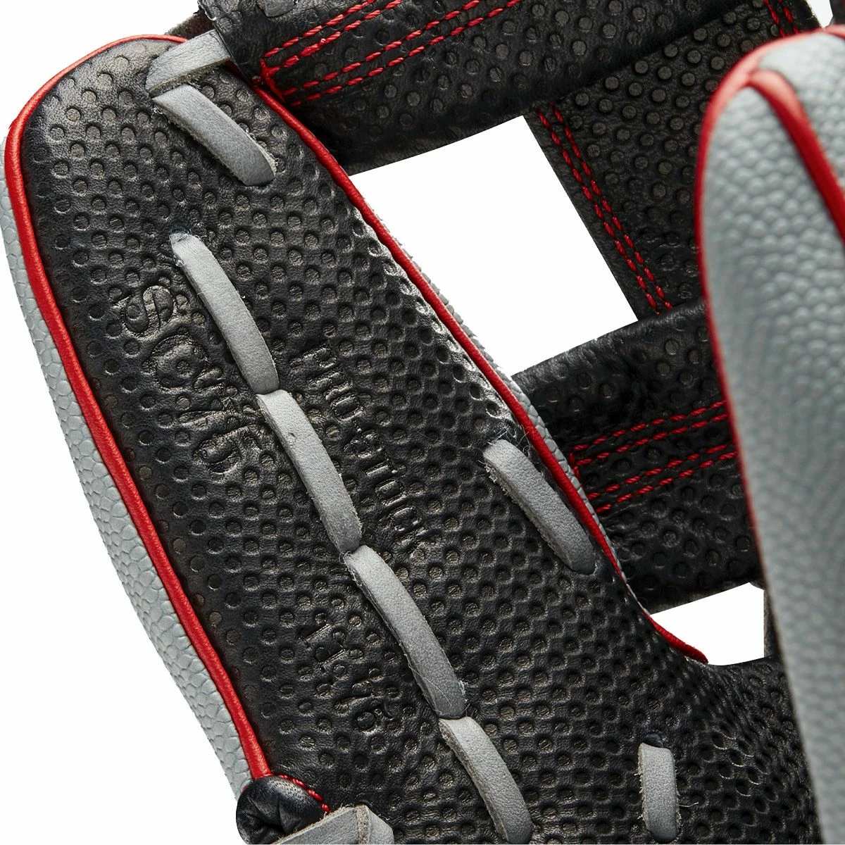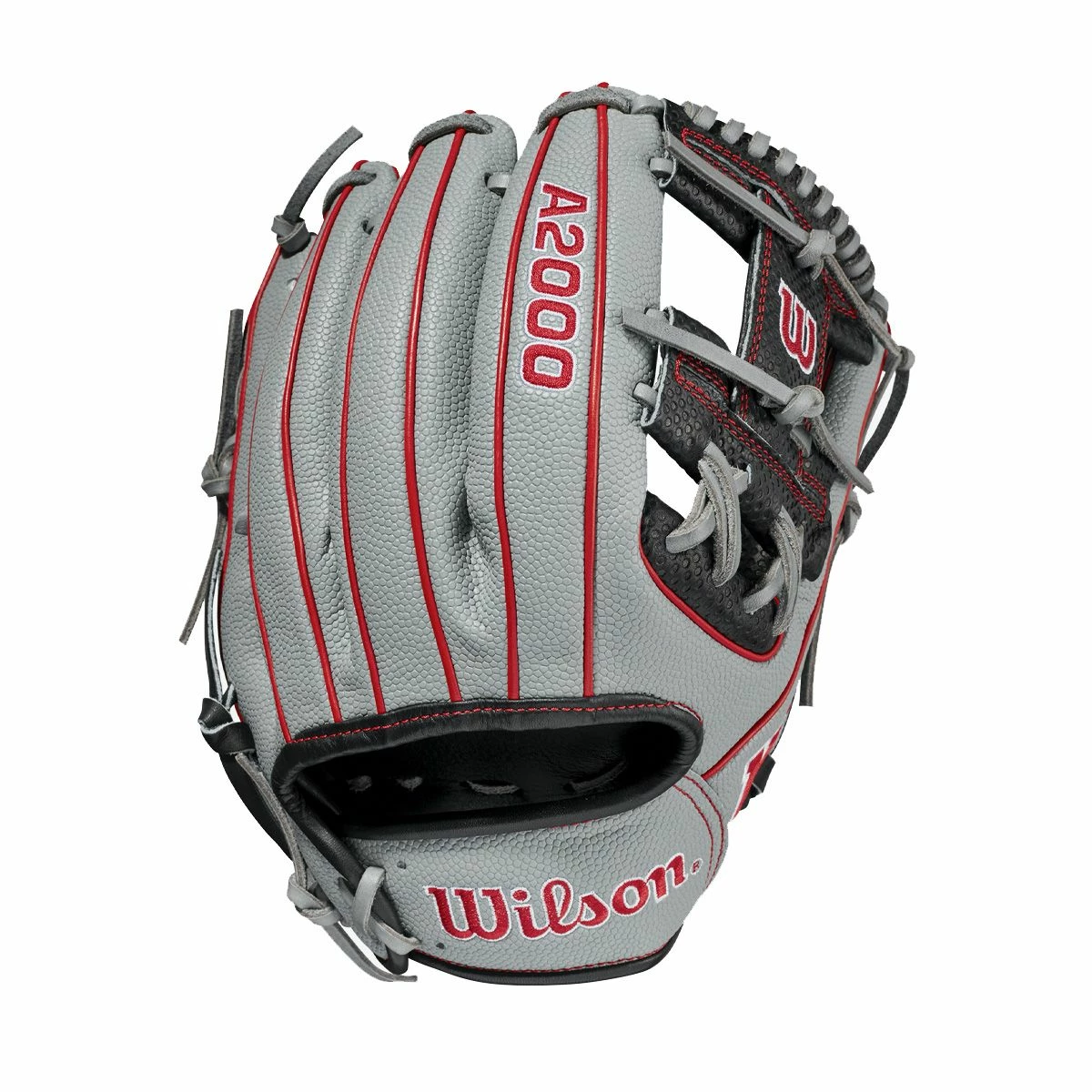 The Wilson A2000 11.75″ Spin Control baseball glove features a deeper pocket than most infielder’s gloves so that the fielder has the chance to get the best possible grip on the ball. This glove’s Spin Control technology and dimpled glove palm increase friction between a ball and glove, and the grey Superskin back reduces the weight of the glove, making it more advanced than other infielder’s gloves on the market.