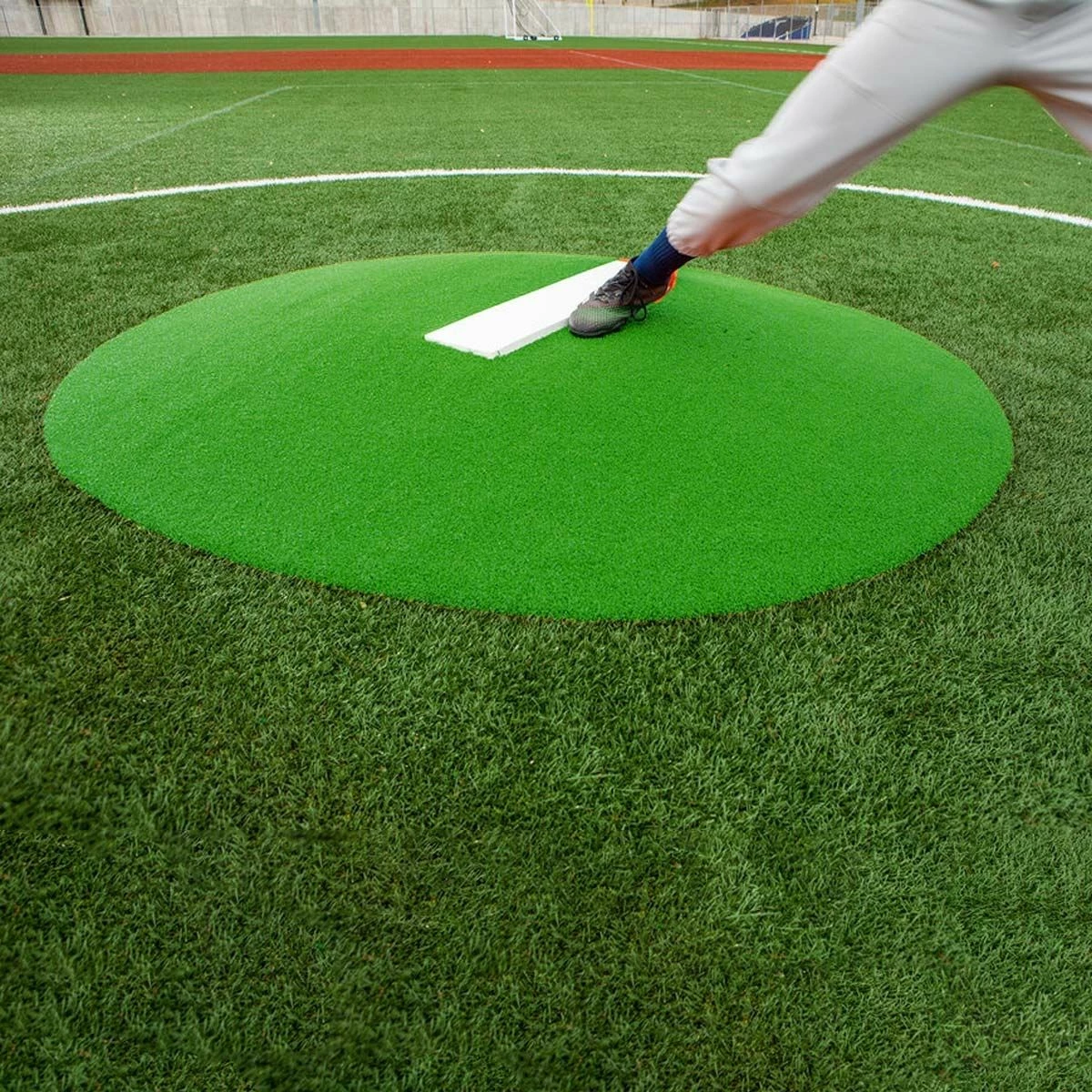 The Portolite green Stride-Off Mound measures 6’H x 5’3″L x 4’5″W, designed for pitchers 5ft tall or higher. This Stride-Off mound is constructed of a lightweight polypropylene foam core that features a regulation pitching rubber. This portable pitching mound gives the pitcher the feel of a regulation baseball mound, while also allowing field crews the ability to move it with ease. This is a perfect option for youth leagues and park and rec departments.ย