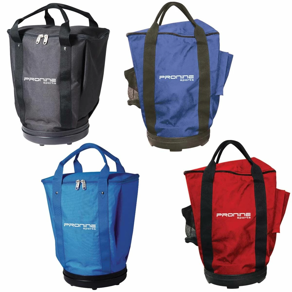 The Pro Nine baseball / softball ball bag has a sturdy base with a zippered top and can hold 72 baseballs or 30 softballs.