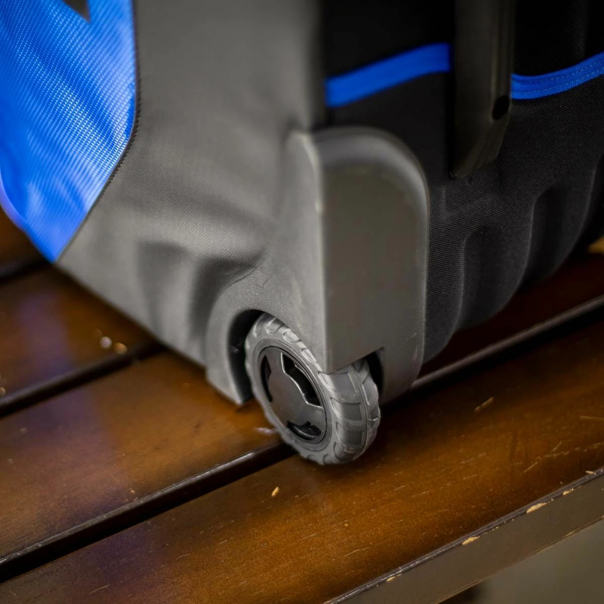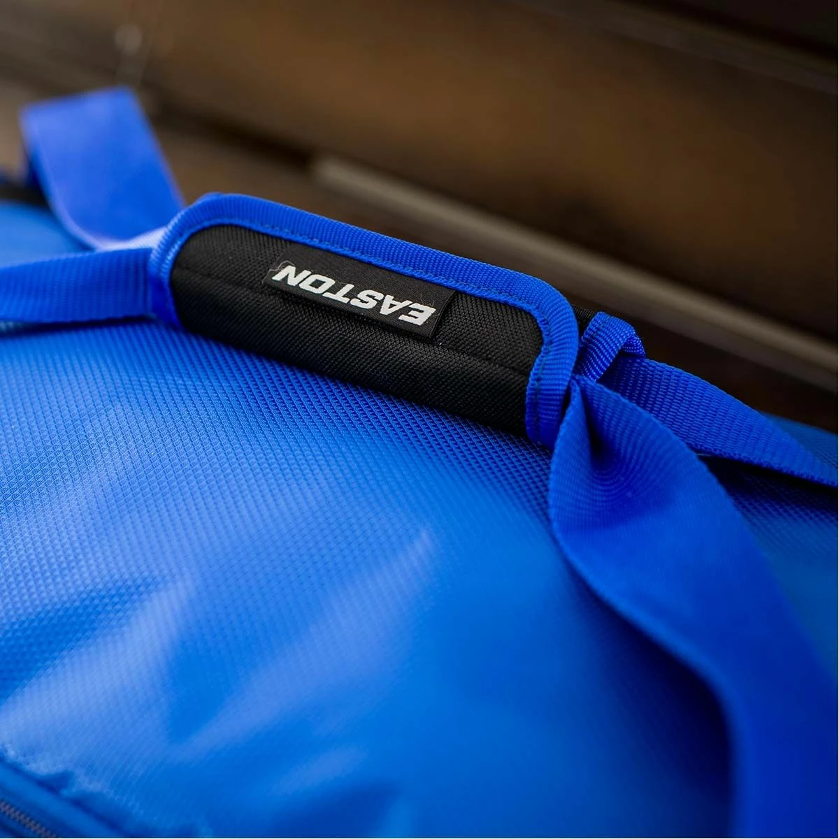 The Easton Dugout is a durable wheeled equipment bag that is perfect for any player and their gear. A hard one-piece molded base provides stability and durability to the bottom of the bag. The padded bat compartment that can store and protect up to 5 bats, and an oversized large-mouth opening with YKK zippers provides easy access into the main bag compartment. Roll up to games or practices through any terrain with the rugged inline wheels of the Dugout Wheeled bag.