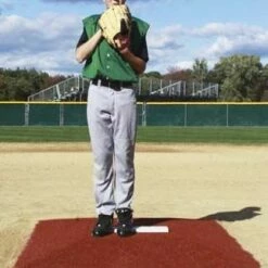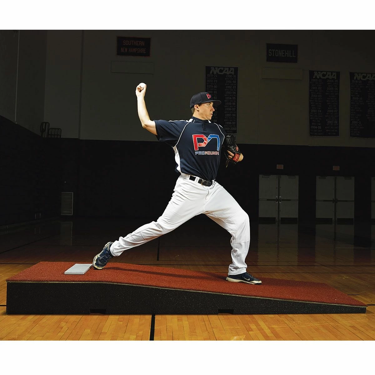 The Promounds clay-colored Collegiate portable pitching mound is constructedΒ of high density foam, rubberized armor and spike-resistant turf making it extremely durable.Β The rubber armor is skid proof and will not damage any gym floors. The combination of the foam core and the rubber armor distinguishes this pitching mound as the most durable and lightweight models on the market today. This indoor portable pitching mound is ideal for off-season training in the gym.