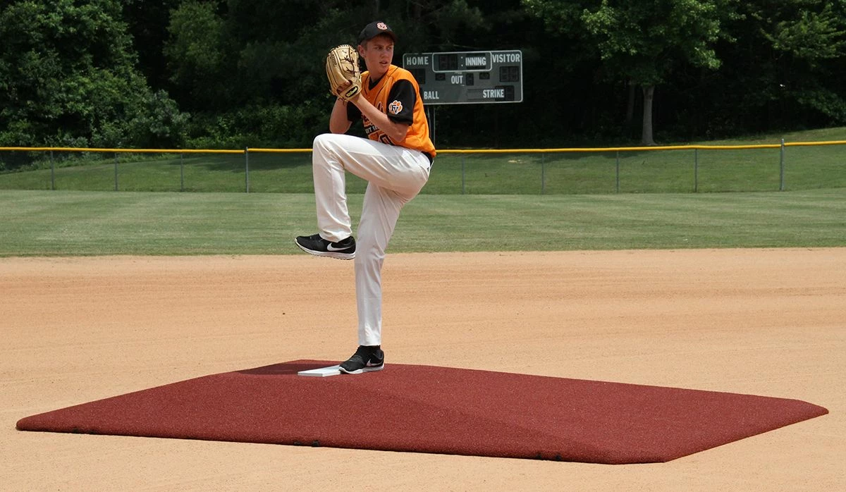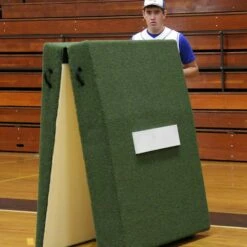 The Proper Pitch 8″H x 11’6″L x 8’3″W tapered game mound is computer designed to meet regulation specifications. This mound can withstand indoor or outdoor use and is made with a durable yet lightweight construction. The turf covering is safe for cleats. The 3/4″ lip means there is no need build up dirt around the mound and it is ready for immediate use.